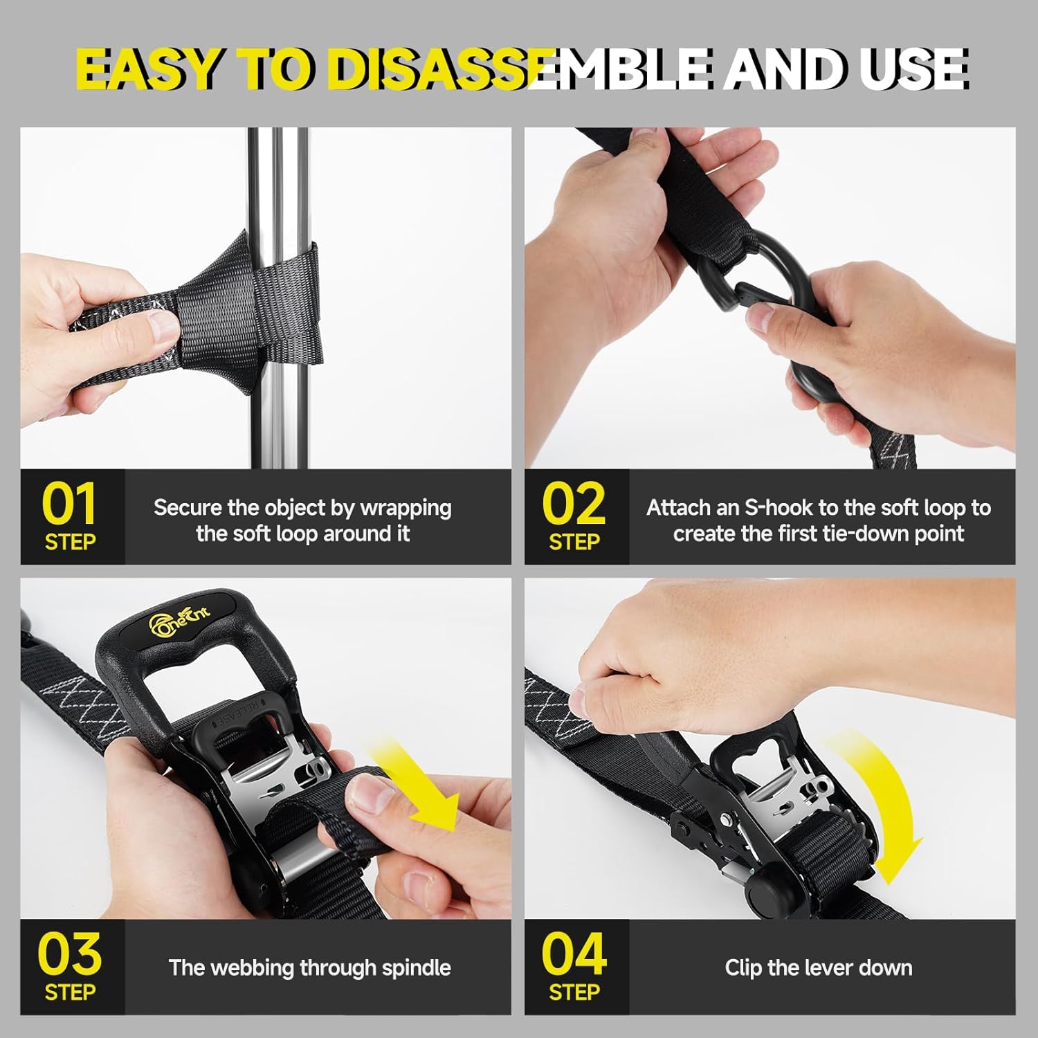 - Built To Last : Made from ultra-durable materials, our ratchet straps feature padded buckles for quick tightening and loosening, and soft loops to protect your valuable cargo. No more worrying about wear and tear, and they come in a free-standing bag for easy carrying!