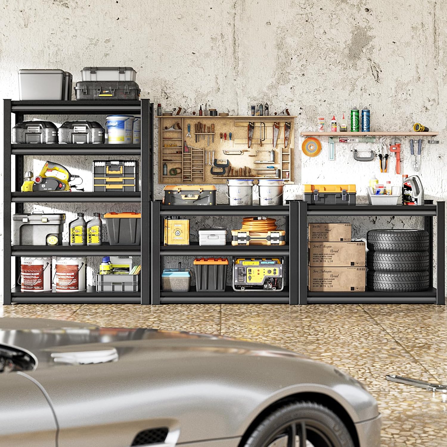 Heavy Duty Shelves, 48'W24'D78'H, 5-Tier Metal Shelves, 3000LBS Loads, Adjustable, Black, For Garages, Warehouses