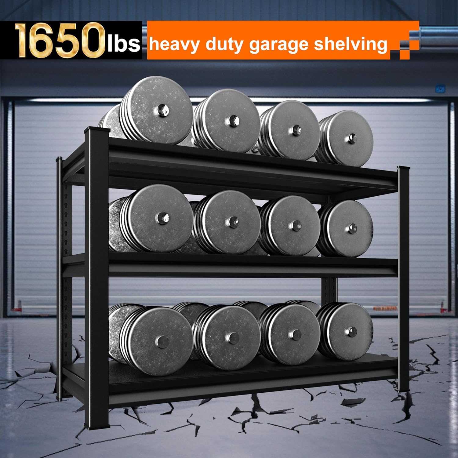 - 【Sturdy and Durable 】: The 3-tier metal shelving unit is made of upgraded premium steel laminates instead of flimsy wood board. No matter how much weight you put within 1650lbs on shelves, the garage shelving will not wobble or shake