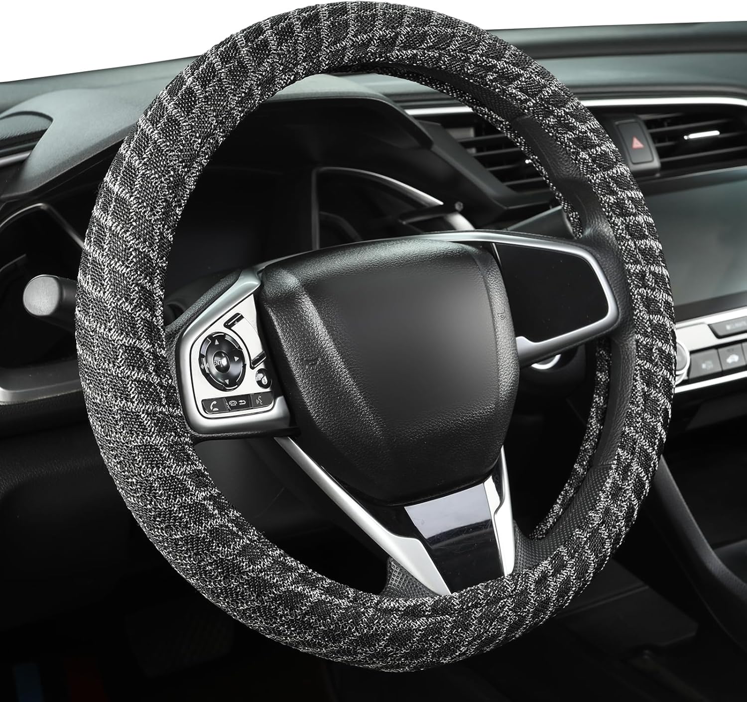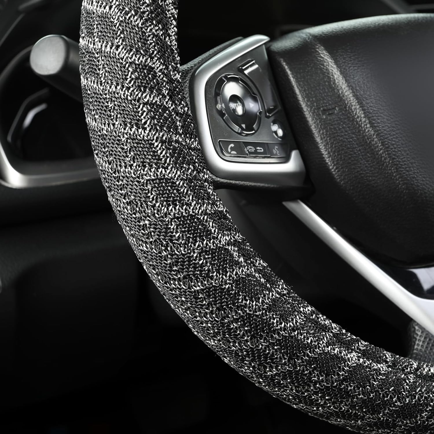 - *Premium Durable Materials* Our steering wheel cover is made of Ultra-breathable Luxury 3D Bright Silk Material,Enjoy long-lasting performance that enhances driving comfort and control.The textured surface further enhances skid resistance, making it an ideal choice for those with sweaty hands, reducing hand fatigue on long journeys.