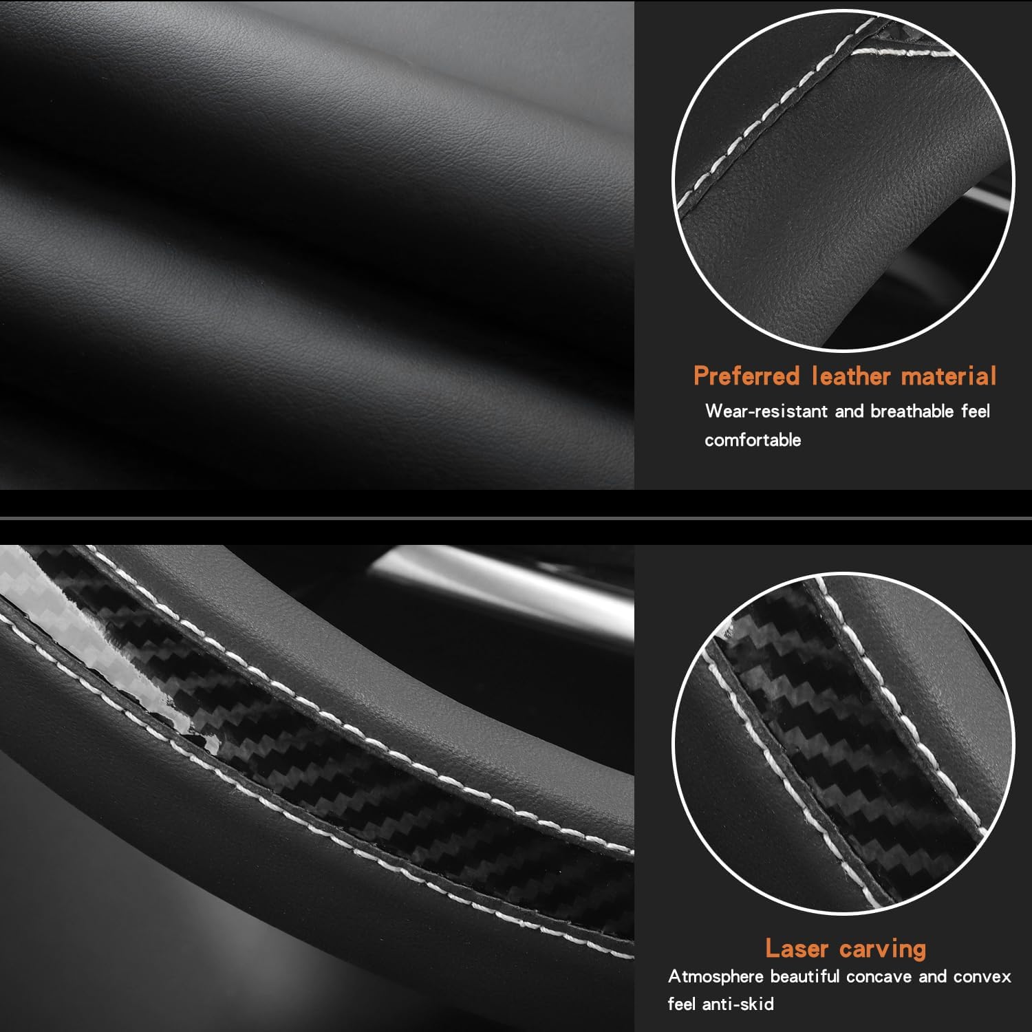 New Leather Car Steering Wheel Cover, Non-Slip Car Wheel Cover Protector Breathable Microfiber Leather Universal Fit for Most Cars(Black)