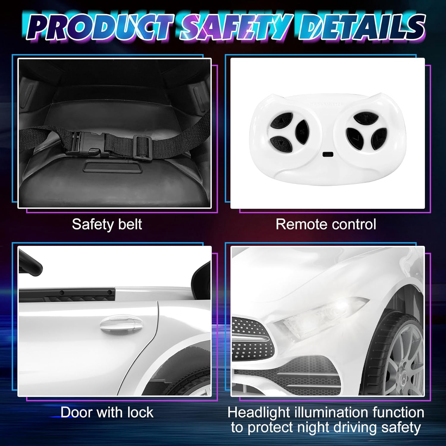 - More Safety: We deliberately add handrails beside the seat and an adjustable safety belt with a buckle to prevent your child from falling off,15-inch weels make driving more stable, can run smoothly on a variety of pavements, such as grassland, sandy beach, road etc, ideal for outdoor playing. Parental remote control & seat belt offer maximum safety for your kids.