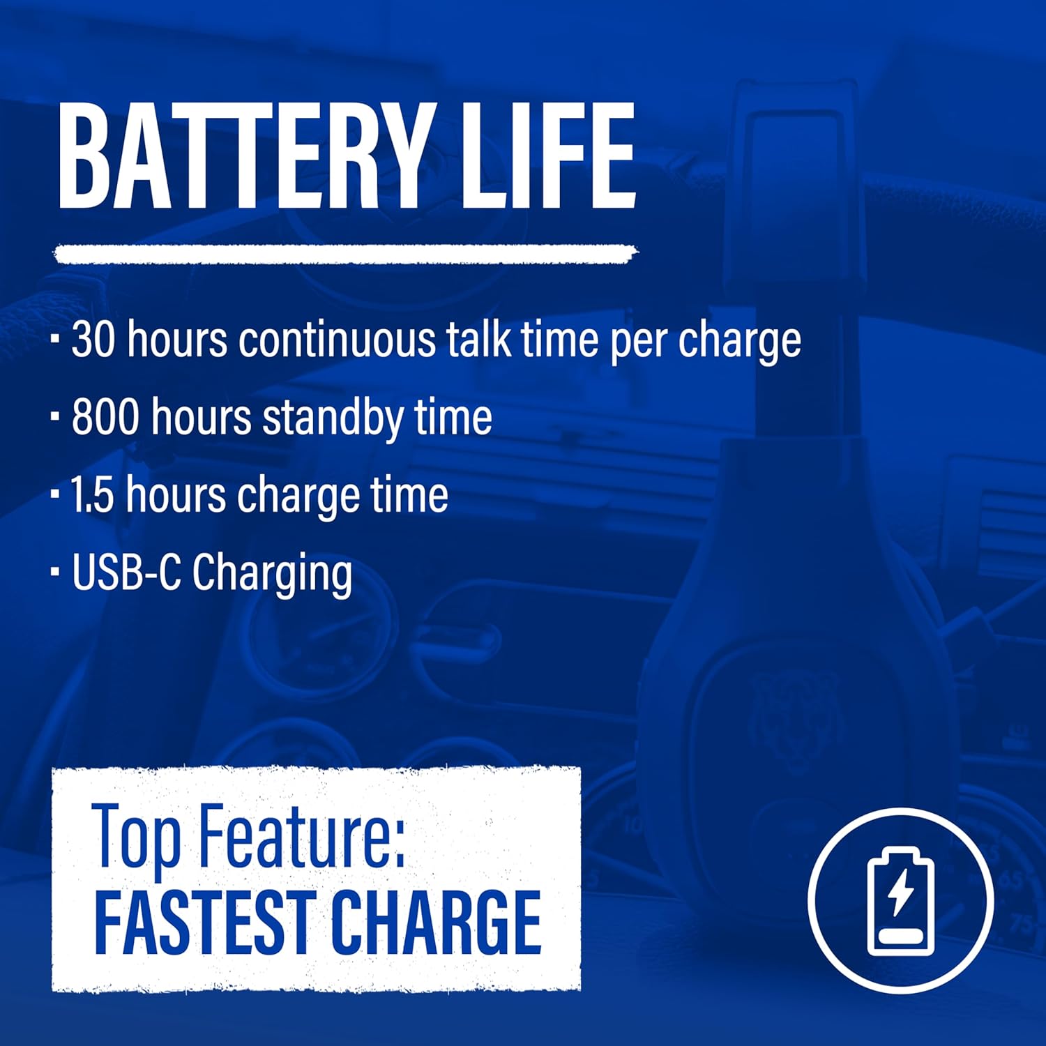 - EXTENDED BATTERY LIFE FOR ENDLESS TALKS: Conquer long drives with peace of mind, thanks to a 400 mAh battery offering 30 hours of talk time and an astounding 800 hours on standby. Perfect for truckers needing a robust bluetooth headset with microphone that's always ready when duty calls without constant recharging concerns.