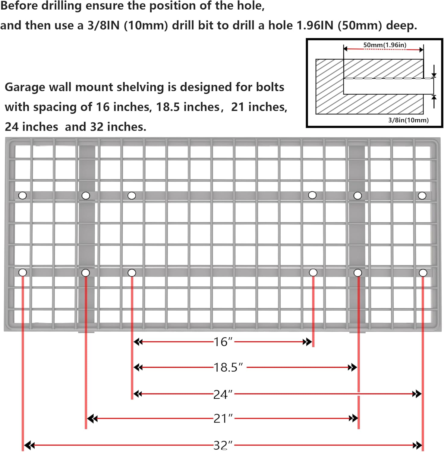 - Upgraded Screw-Riveted Construction: Unlike similar products with slot structure, our shelves and brackets are riveted with screws, which makes the shelves more solid and not easy to slide. Before drilling ensure the position of the hole, and then use a 3/8IN(10mm) drill bit to drill a hole1.96IN (50mm) deep.