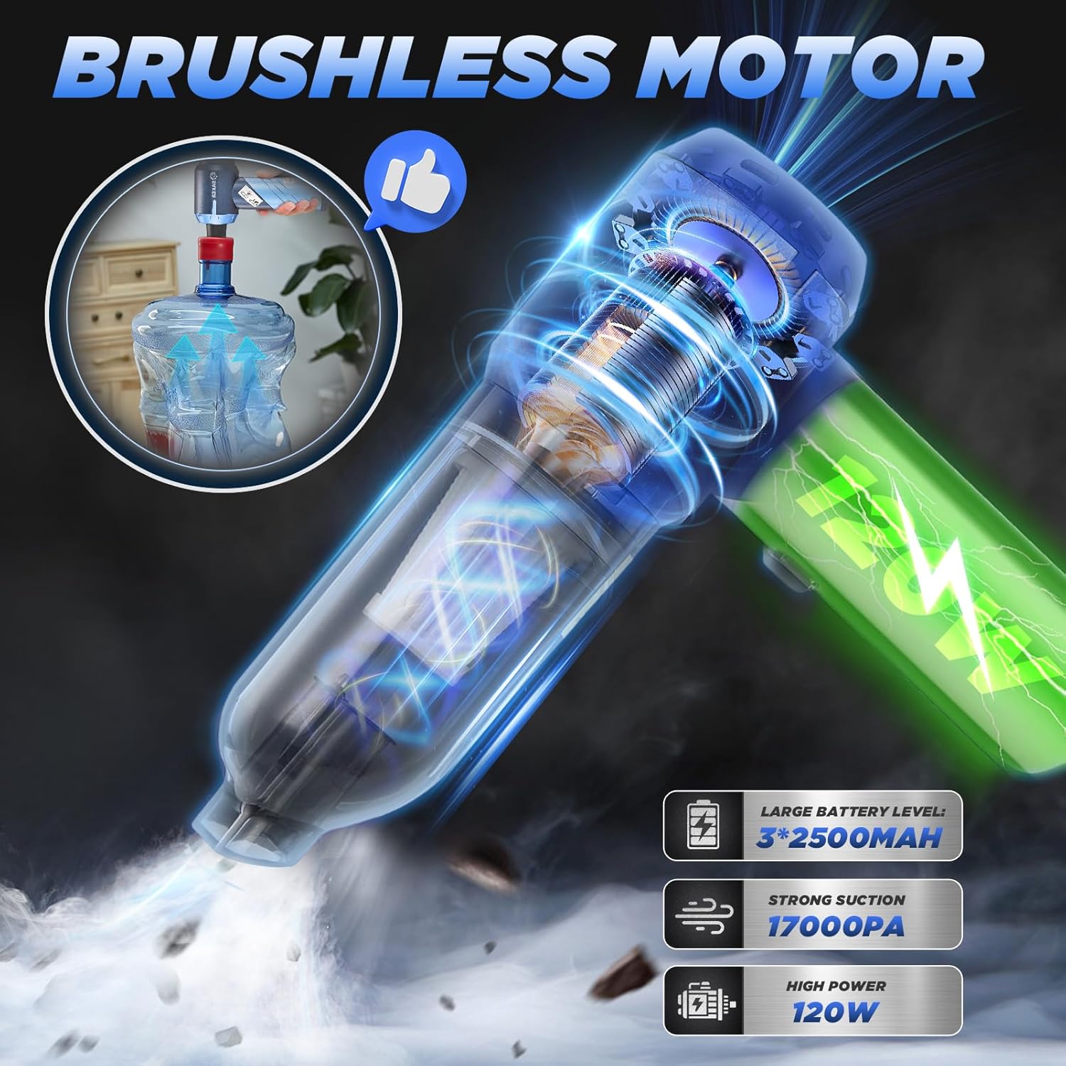 - 【17000 PA Super Suction 】 The car vacuum cleaner high power can achieve three levels of suction adjustment, thanks to its upgraded high-speed brushless motor, which increases the suction to 17000PA. Whether it is a large area or a small area, dust and debris can be easily cleaned.