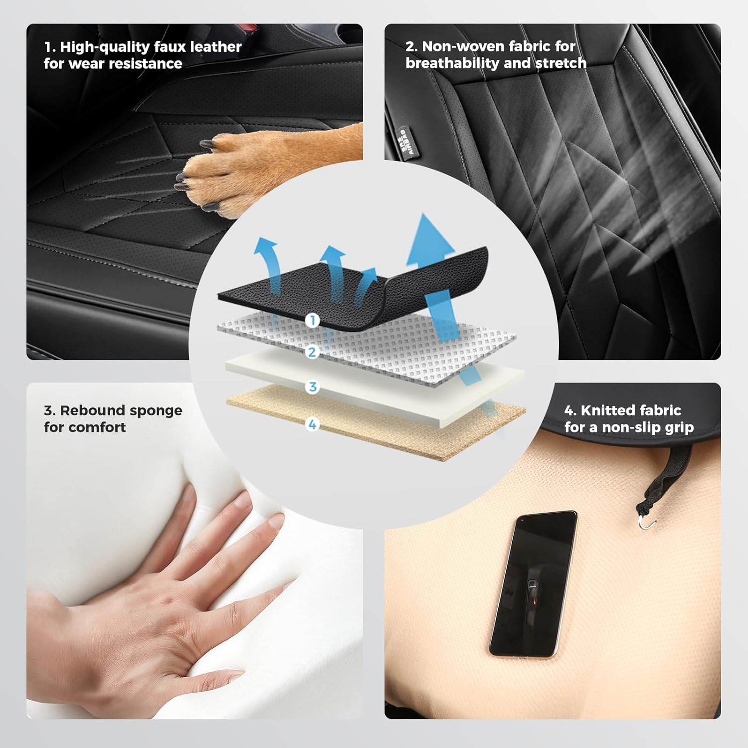 - Premium Car Seat Protector: This car seat cover set features a four-layer structure for superior waterproof protection, shielding your seats from spills, pet scratches, and harmful UV rays. Easy to clean with a damp cloth, keeping your waterproof car seat cover looking new.