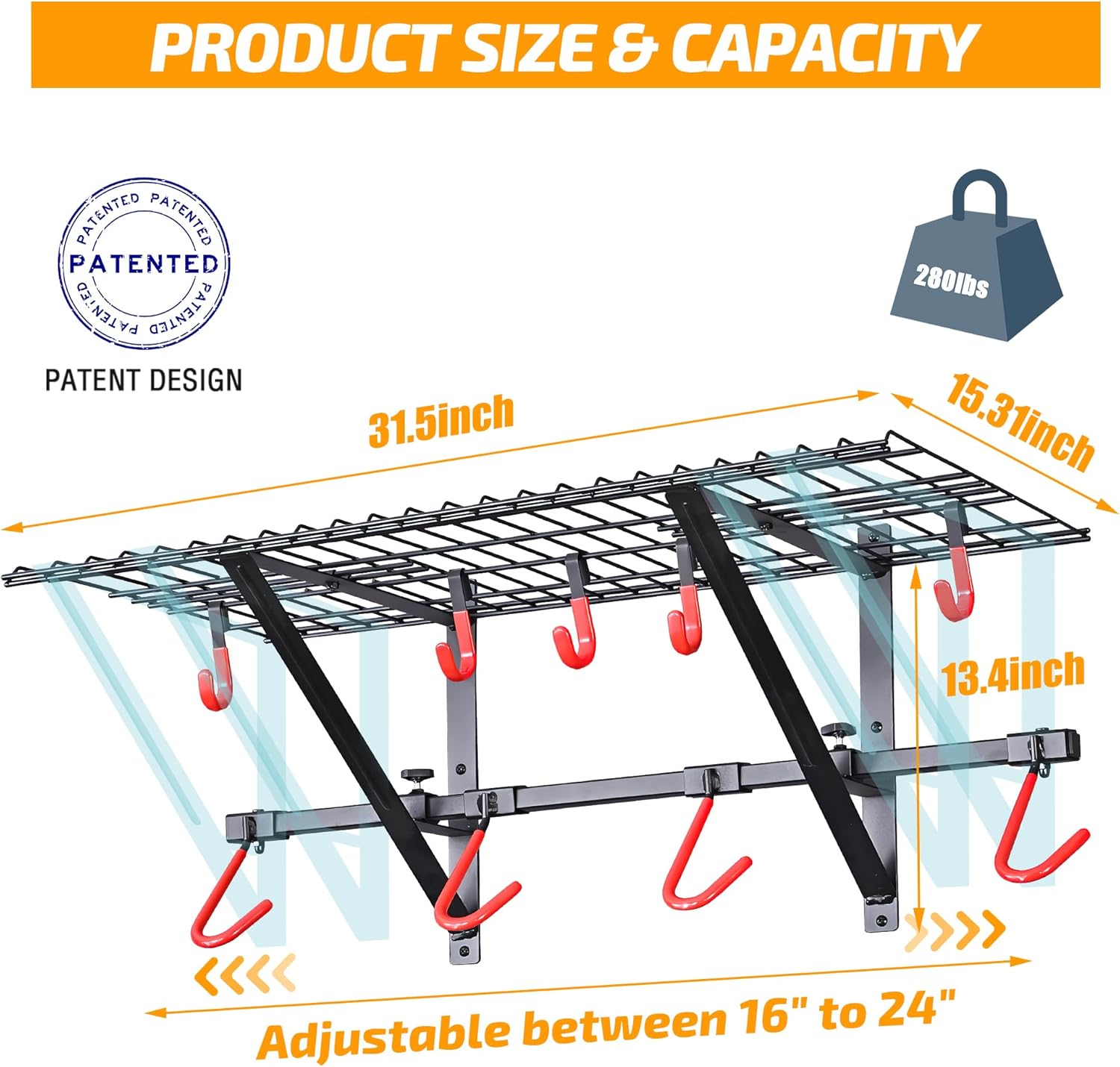 - 【Versatile Storage for All Gear】The top shelf is perfect for holding helmets, sports gear, and seasonal items, while the hooks accommodate bikes of various sizes. Designed to optimize vertical storage, it helps you make the most of your garage. For any questions or concerns, contact us via email for prompt assistance within 24 hours.