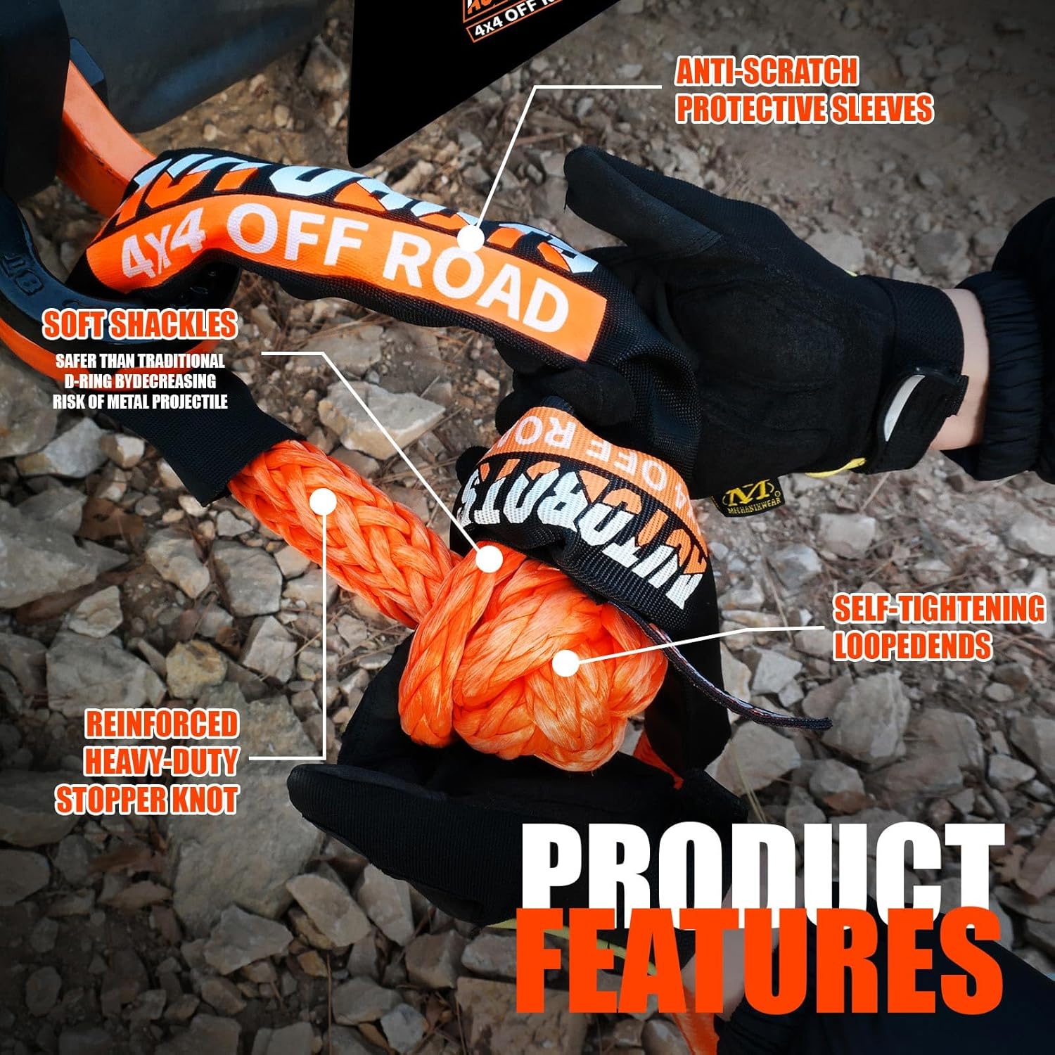 AUTOBOTS Kinetic Recovery Rope 1" x 20'(48,600lbs)+2 Soft Shackles,Heavy Duty Tow Rope Tow Strap for Truck ATV UTV SUV Car,Offroad Recovery Kit