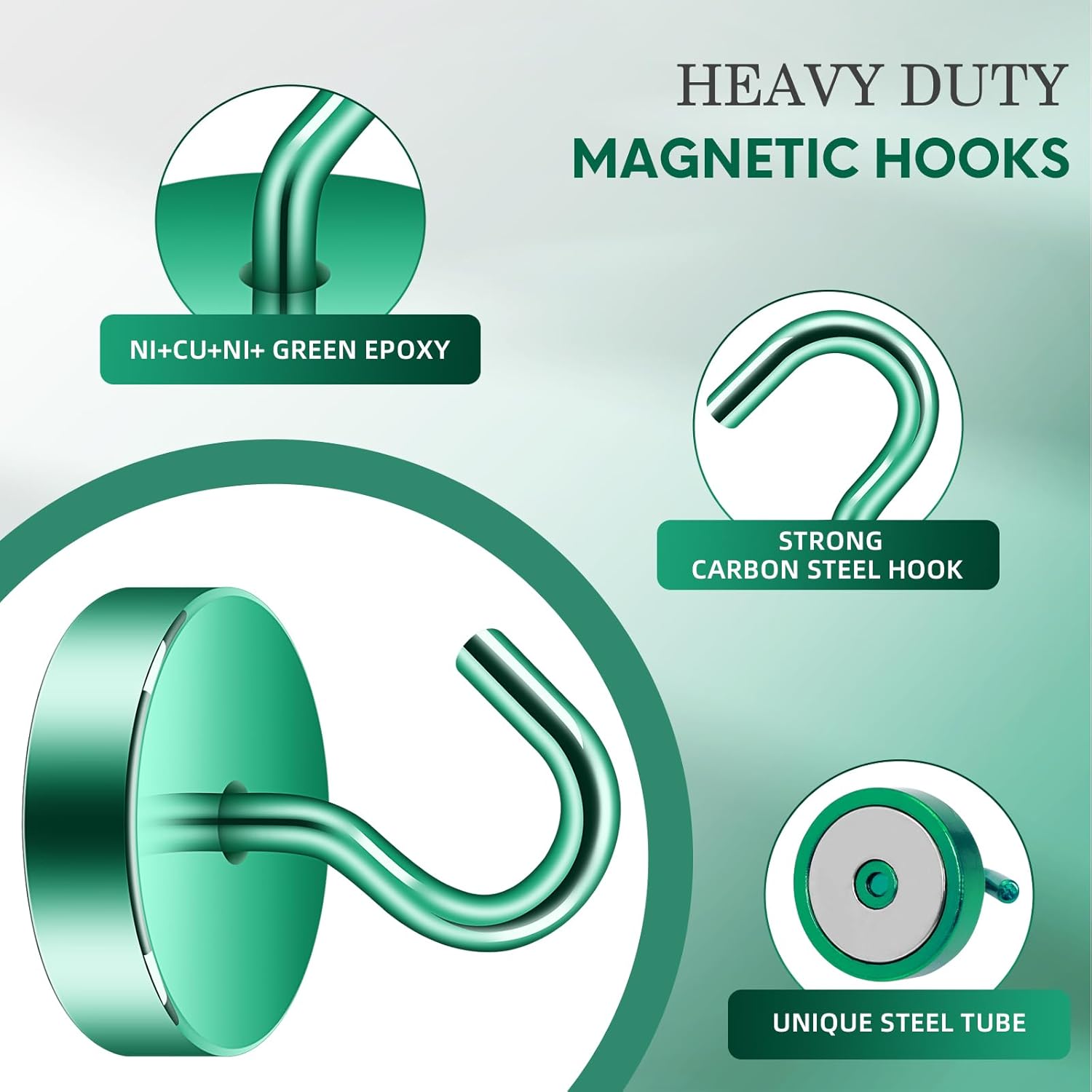 Neosmuk Magnetic Hooks, Cruise Ship Essentials, 80lb+ Heavy Duty Magnetic Hooks for Cruise Cabins, Refrigerator, Grill, Hanging, and Travel | Extra Strong Must-Haves Magnet Hook,Green
