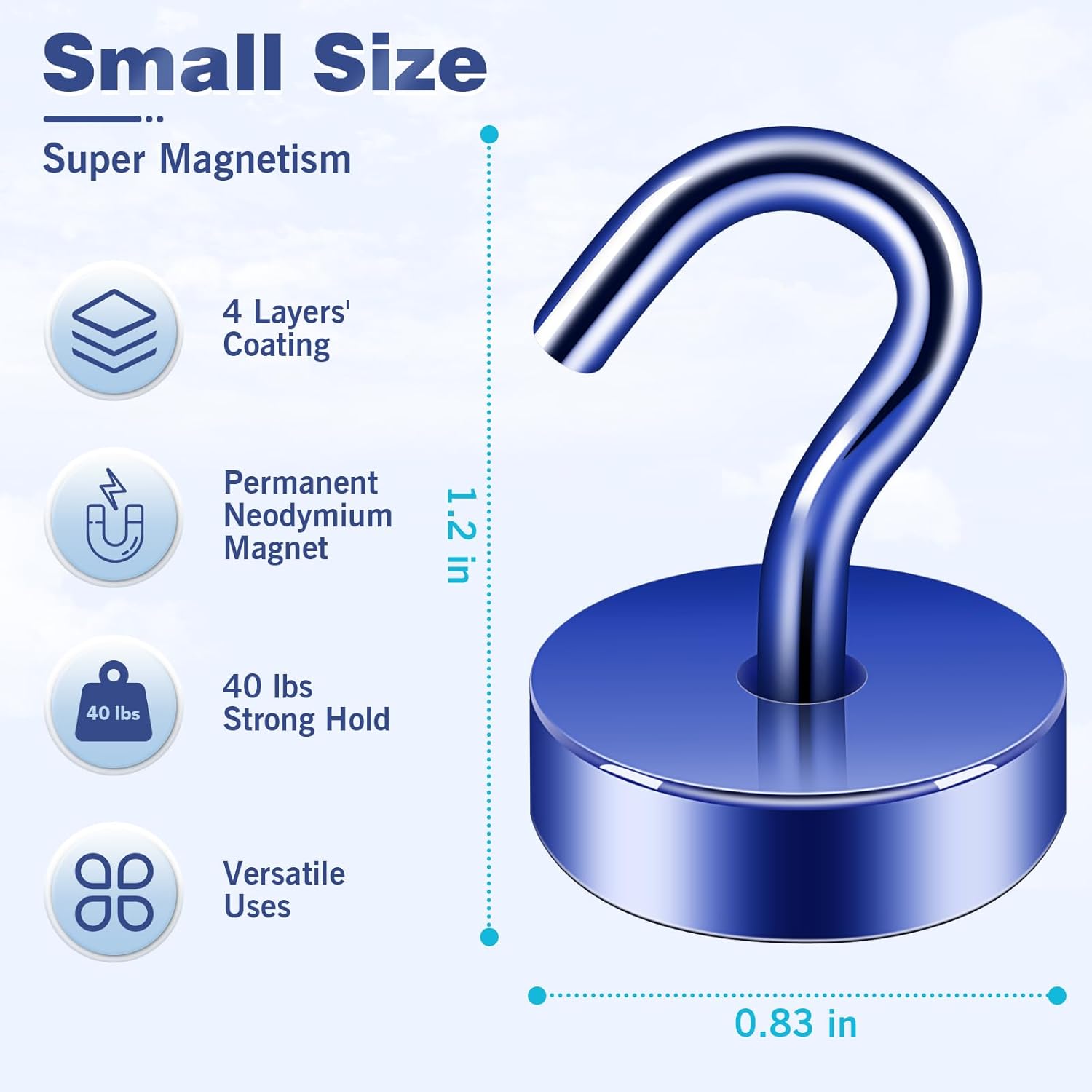 - ✔MAGIC STEEL TUBE DESIGN - Unique design of steel tube inside the base of magnetic hooks greatly increases the attractive force , especially on thin steel! It increase approximately 20% force comparing those none-tube magnets. it solves the problem of weak force on thin steel. Permanent magnetic hook with magic steel tube, strong magnetism lasts forever!