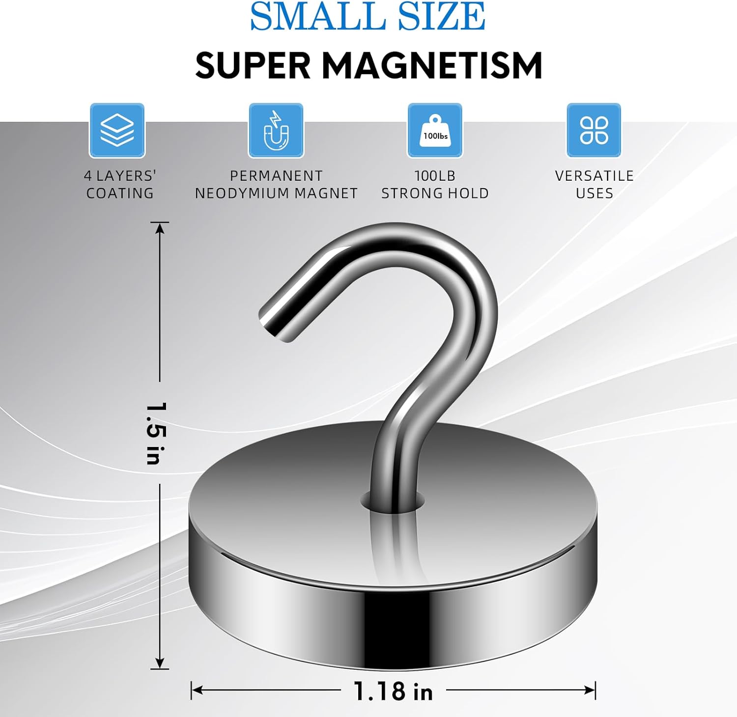 - โ SUPER POWERFUL - Amazing strong, sturdy, and heavy-duty metal magnetic hook with a CNC machined steel base, embedded with a high grade latest generation of โmagnetic kingโ i.e. supe Ferrite, this magnetic hook offers more than 100lb pulling force under steel. The magnetic hook is perfect for hanging items on the fridge in the kitchen.