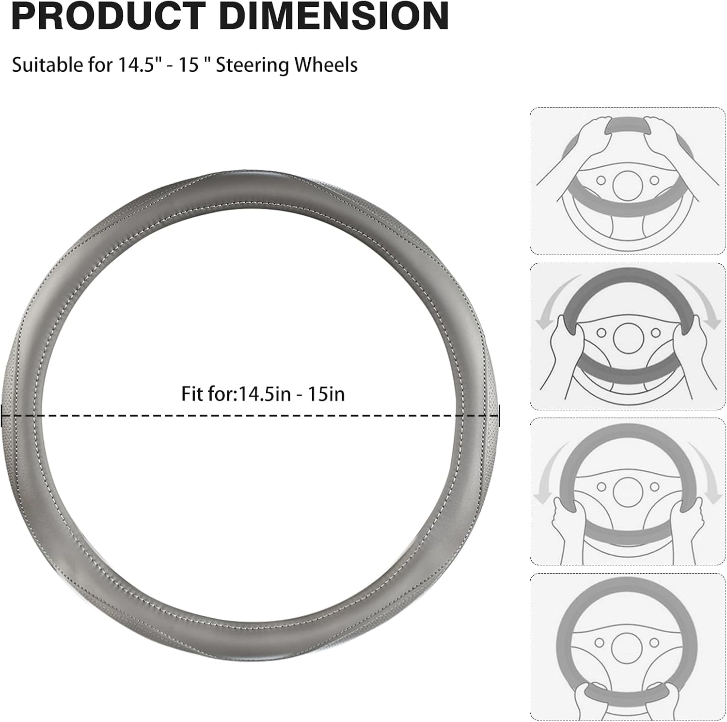 - 【Luxurious Cowhide Material】:This gray steering wheel cover is made of genuine cowhide. It is sewn from one whole piece of material without any splicing, with only one joint.