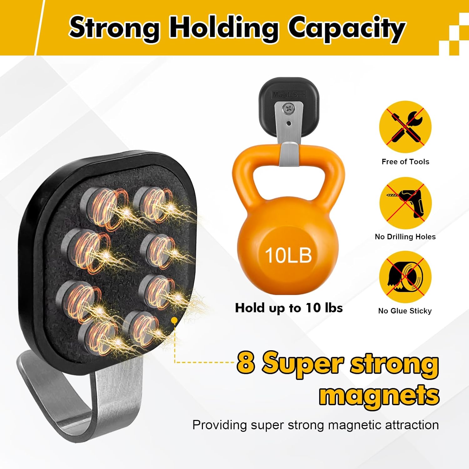 - Strong Holding Capacity: Upgraded design includes 8 magnets can securely hold up to 12 lbs of weight in vertical installation, providing a reliable and convenient hanging solution for various items in your home, office, RV,cruise workshop, or other spaces