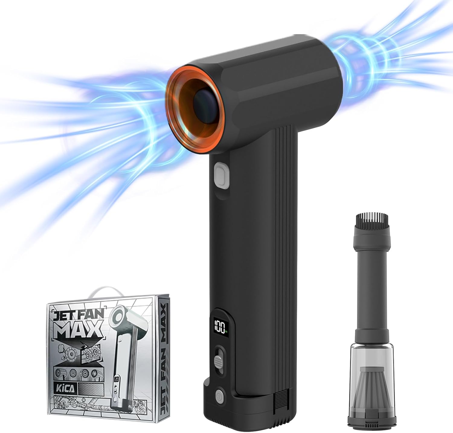 Kica JetFan Max – Turbo Dryer Blower for Car, Cordless Leaf Blower, 205 MPH, 31.75oz Max Thrust, Cordless, Stepless Speed Control for Patio Cleaning, Lawn Care and Car Drying