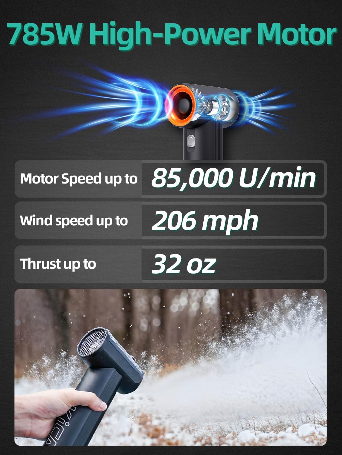 - 【785W High-Power Motor for Superior Cleaning】Achieve wind speeds of up to 205 MPH and a maximum thrust of 31.75 oz, effortlessly tackling stubborn debris, leaves, and dust.