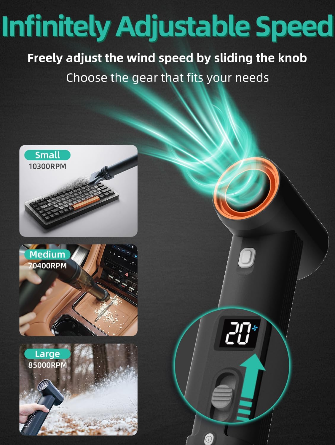 - 【Variable Speed Control for Precision】Fine-tune airflow from 1 to 100 with a smooth sliding knob, delivering perfect wind power to suit any task or environment.