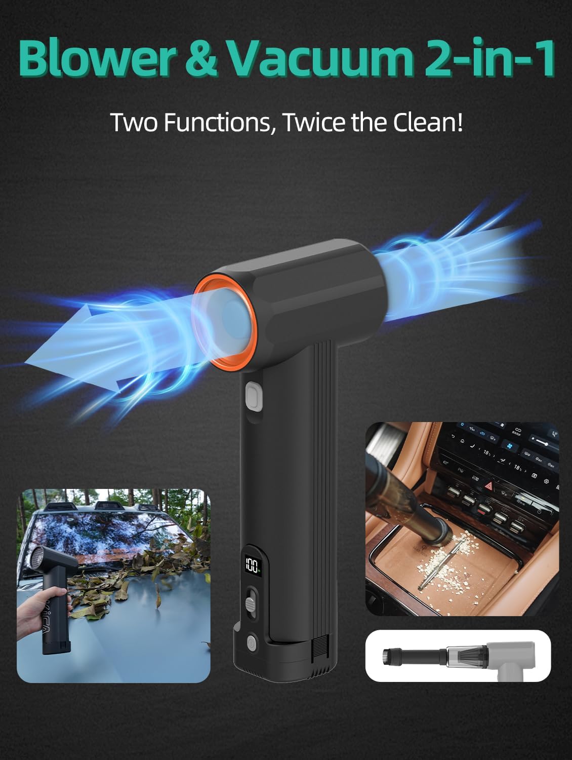 - 【2-in-1 Blower and Vacuum Versatility】Easily transform the blower into a mini vacuum with the included attachment, making it perfect for cleaning tight spaces and hard-to-reach areas.