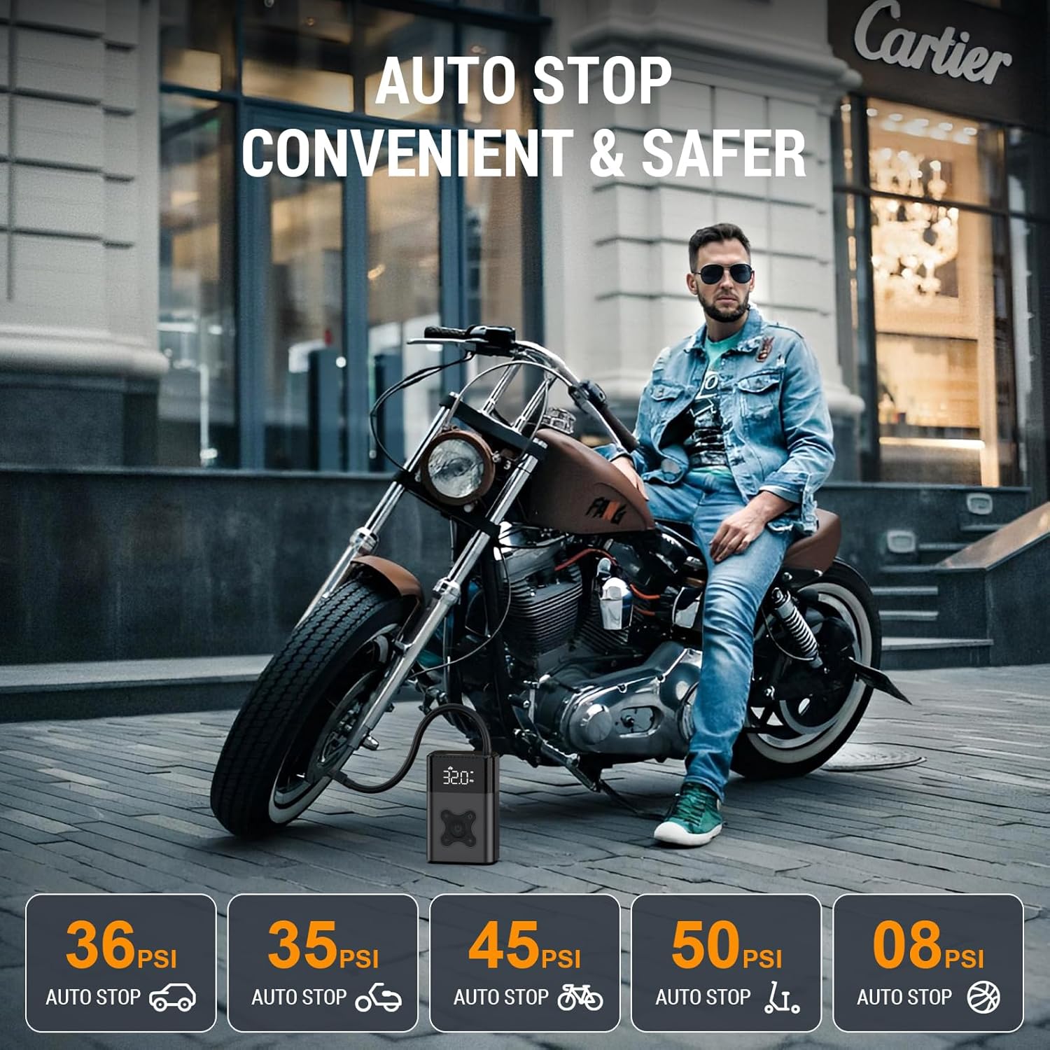 - Smart Tire Inflator:The inflator has 5 pre - set inflation modes for cars, motorcycles, bikes, electric bicycles, and balls. There's also a customizable 6th mode where you can set the pressure according to your specific requirements. It offers two pressure units, PSI and BAR, which you can switch between by pressing the changeover button for two seconds
