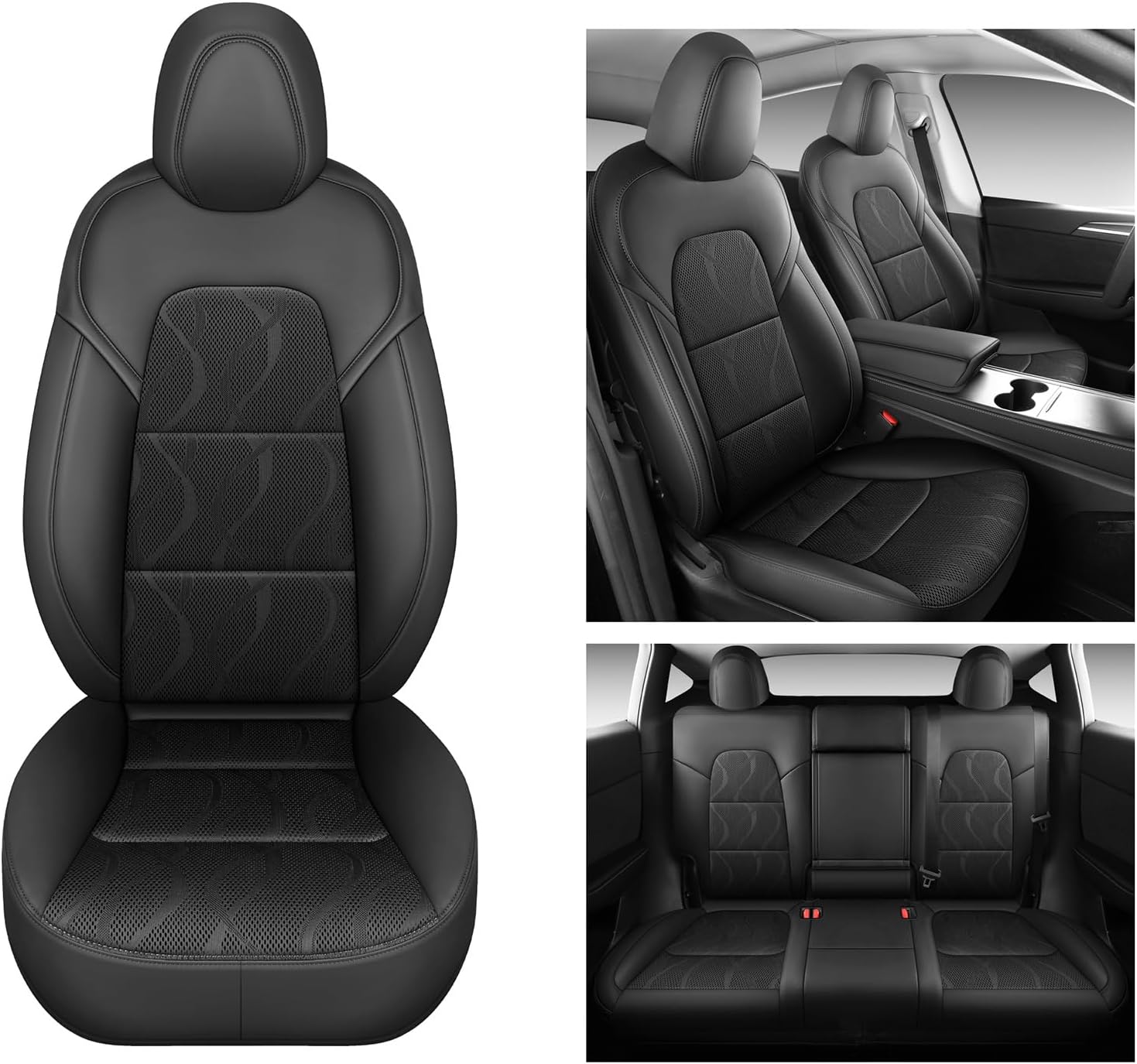Tesla Model Y Seat Cover Full Set, Faux Leather Tesla Car Seat Cover, Perfect Suitable for Tesla Model Y 2020 2021 2022 2023 2024 2025 (Black)