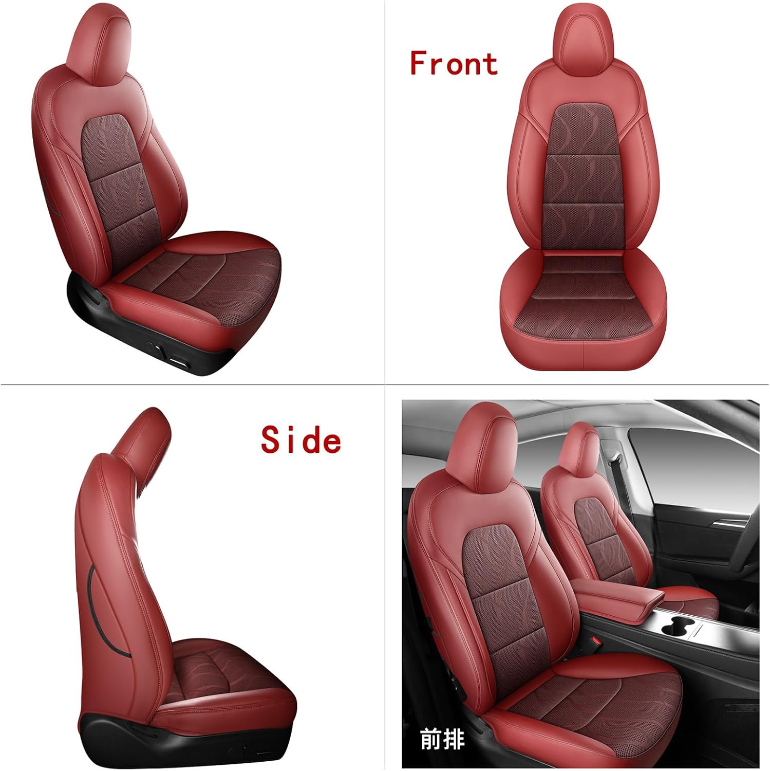 Tesla Model Y Seat Cover Full Set, Faux Leather Tesla Car Seat Cover, Perfect Suitable for Tesla Model Y 2020 2021 2022 2023 2024 2025 (Wine Red)