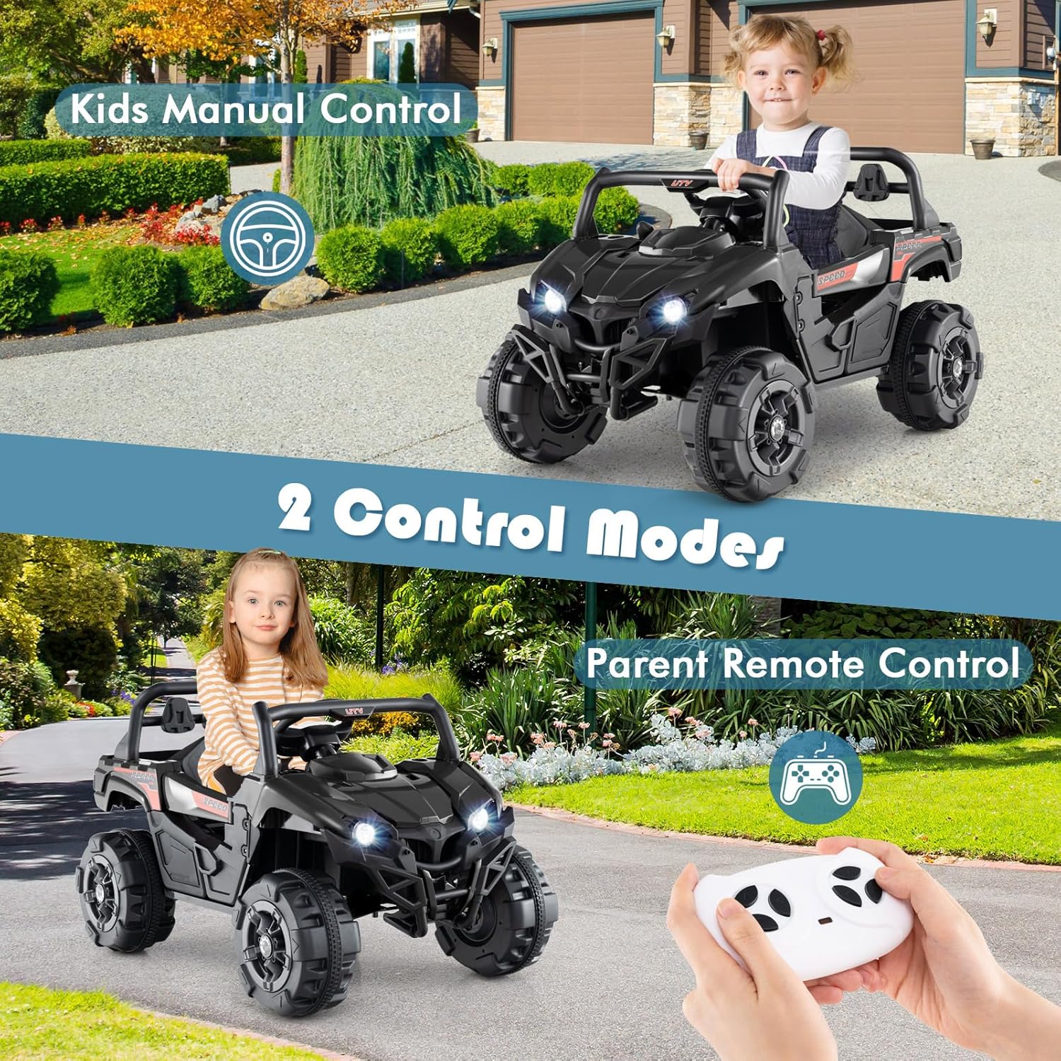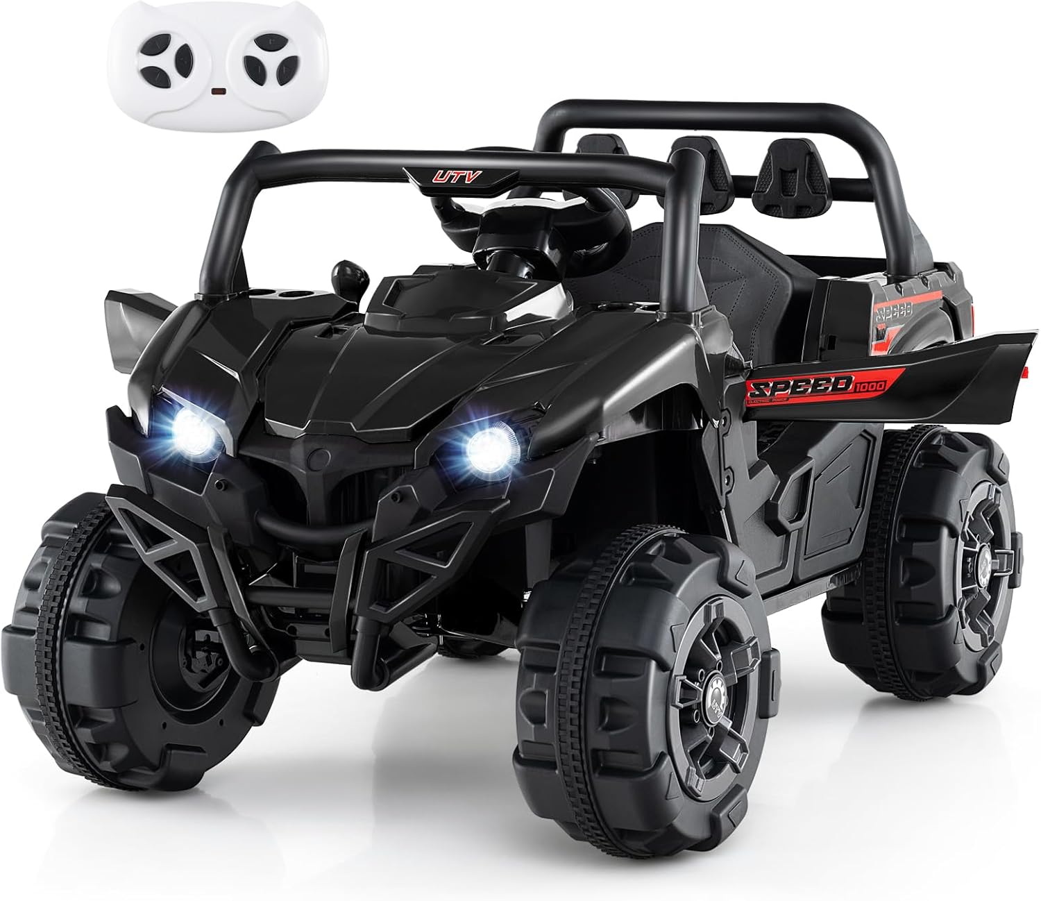 OLAKIDS 12V Ride on Car UTV, Battery Powered Off-Road Kids Electric Vehicles with Remote Control, Music, Horn, MP3, Lights, 3 Speeds, Soft Start, Ride on Truck for Boys Girls (Black)