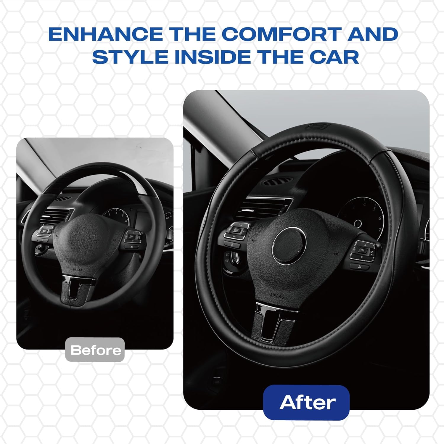 - EASY INSTALLATION-Skechers car steering wheel cover is easy to install with 3 steps. Just cover the steering wheel with the product from the top, pull it to cover the whole steering wheel, and adjust the product to snugly fit on the steering wheel.