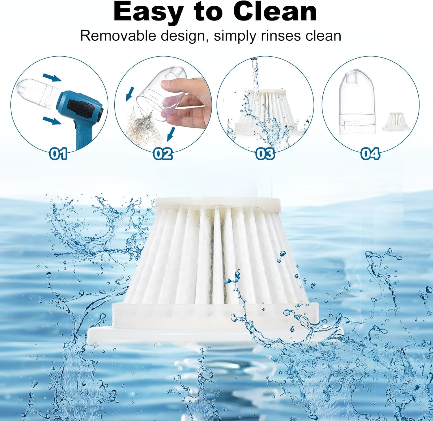 - 【Dual Washable & Reusable filter】Mulcort car vacuum cleaner equipped with two HEPA filters. Both filters are designed to be washable and reusable, ensuring long-lasting use and easy maintenance. Work to maximize the vacuum's cleaning performance while minimizing the need for frequent filter replacements. Mulcort cordless hand vacuum cleaner makes your cleaning tasks more convenient.