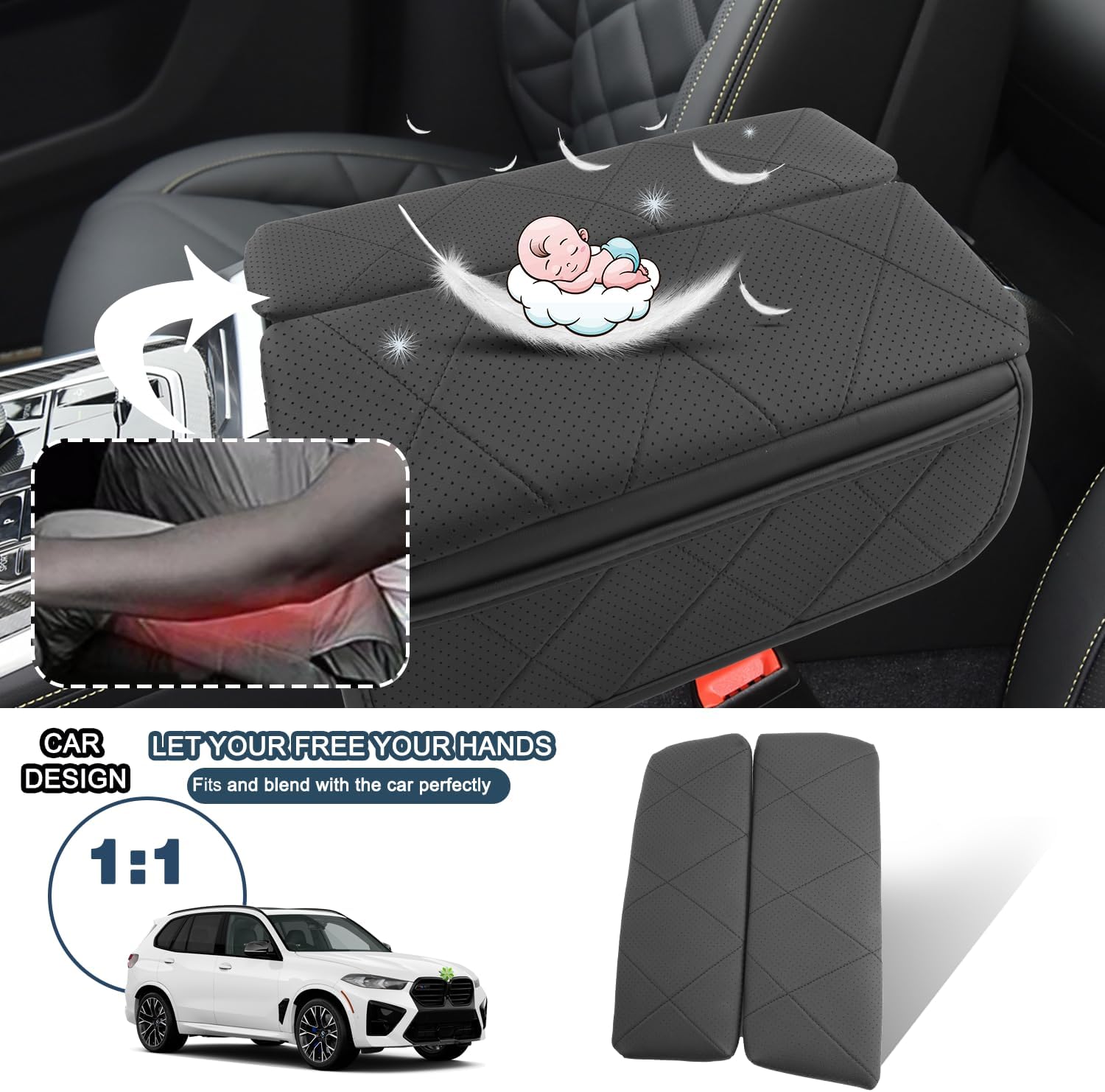 - ►SOFT & COMFORTABLE - For BMW X6 Accessories auto armrest cover makes it comfortable enough for your arm rest. Stress off your elbow while driving and keep your arm from sweating on for BMW X5 center console pad.