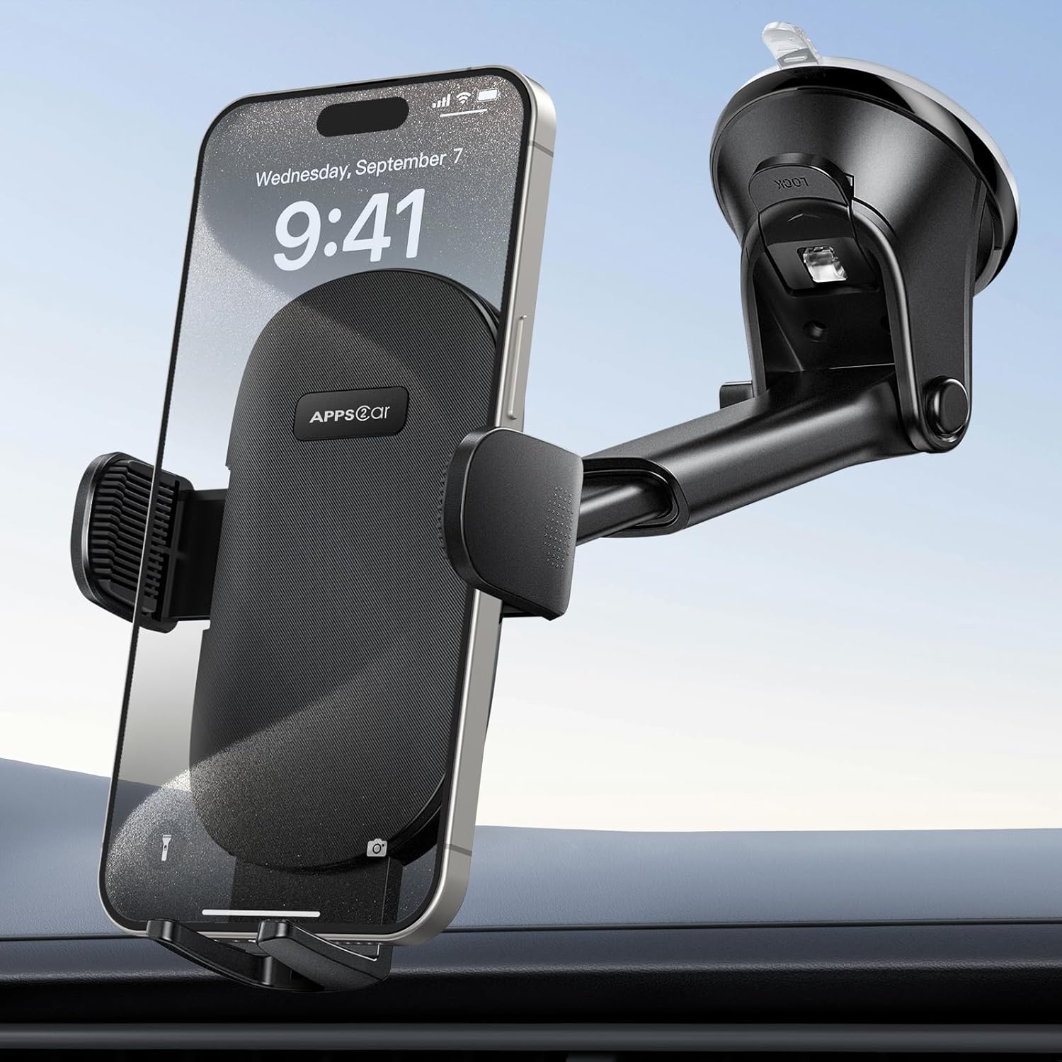 APPS2Car Car Phone Holder for Dashboard & Windshield, Adjustable Long Arm, Strong Suction Cup, Compatible with iPhone, Samsung, All Phones