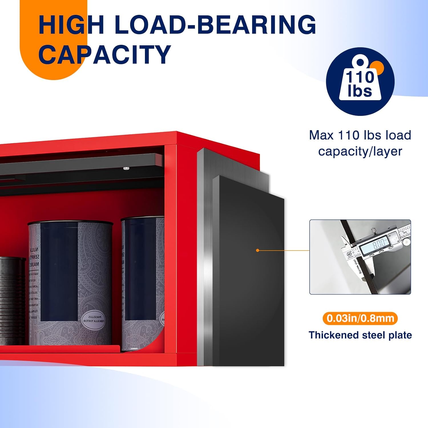 - 『PREMIUM QUALITY MATERIAL』 Heavy Duty Garage Storage Cabinets are made from 0.8mm high pressure steel plate that can withstand loads of up to 120lbs; the powder coating gives the cabinets a textured look and is rust and scratch resistant to complement a variety of decor styles.