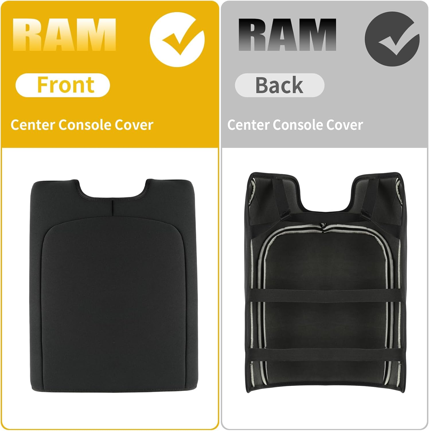 GIANT PANDA Custom Fit Console Cover for 2013-2018 Ram 1500 & 2013-2024 Ram 2500/3500/1500 Classic Model Jump Seat Console - Neoprene Armrest Center Cover - Full Protection - Black