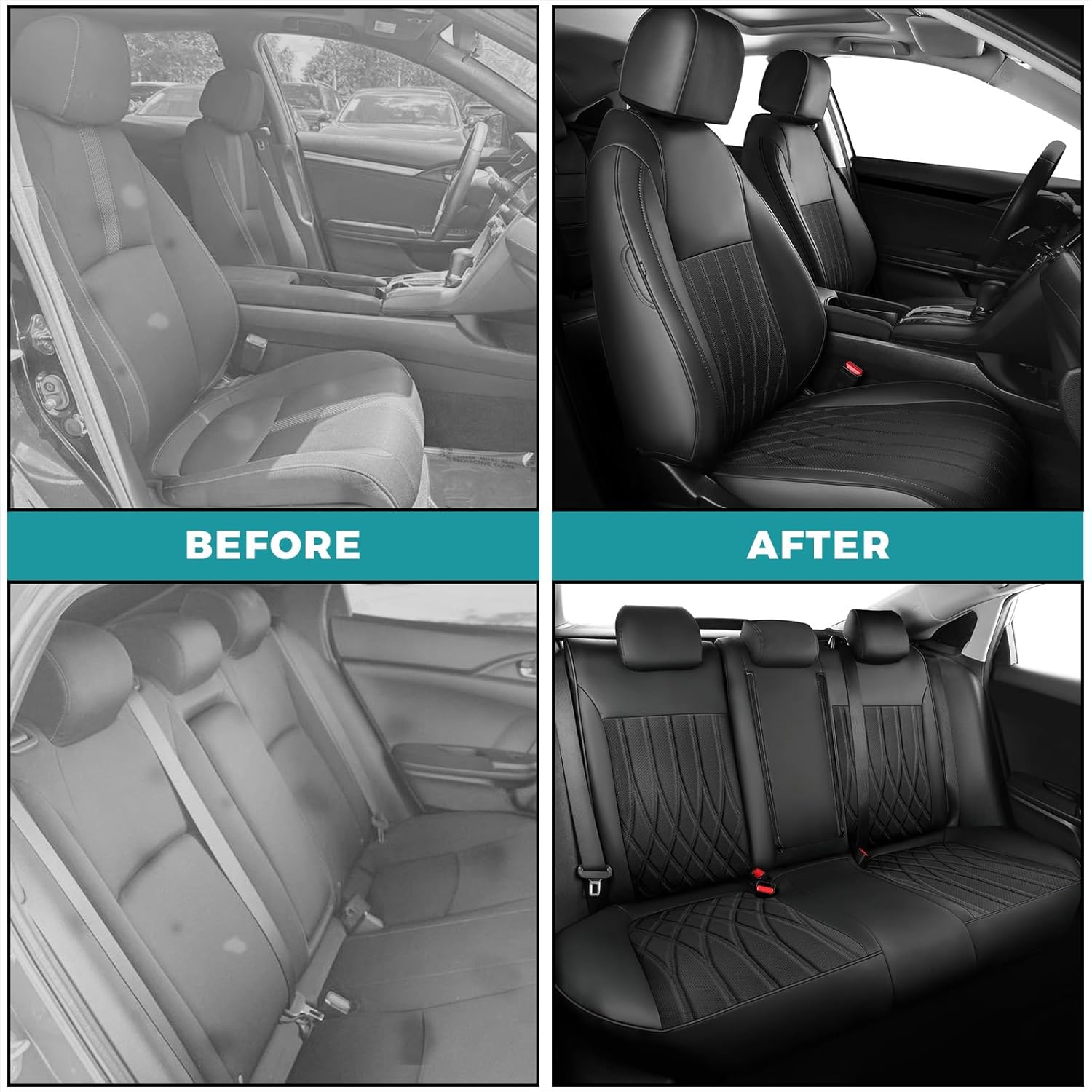 - Tailored for Civic - Designed exclusively for civic, ensuring a perfect fit like a glove.Say goodbye to ill-fitting, sliding universal covers with limited coverage.Please note that these size only fit for the 2016-2021 Civic Sedan EX-L, EX-T, EX, Touring, LX-P, Sport.Ensure that your back row has three seats that are split 40/60 and equipped with foldable cup holder armrests, and that your Civic is a sedan model.