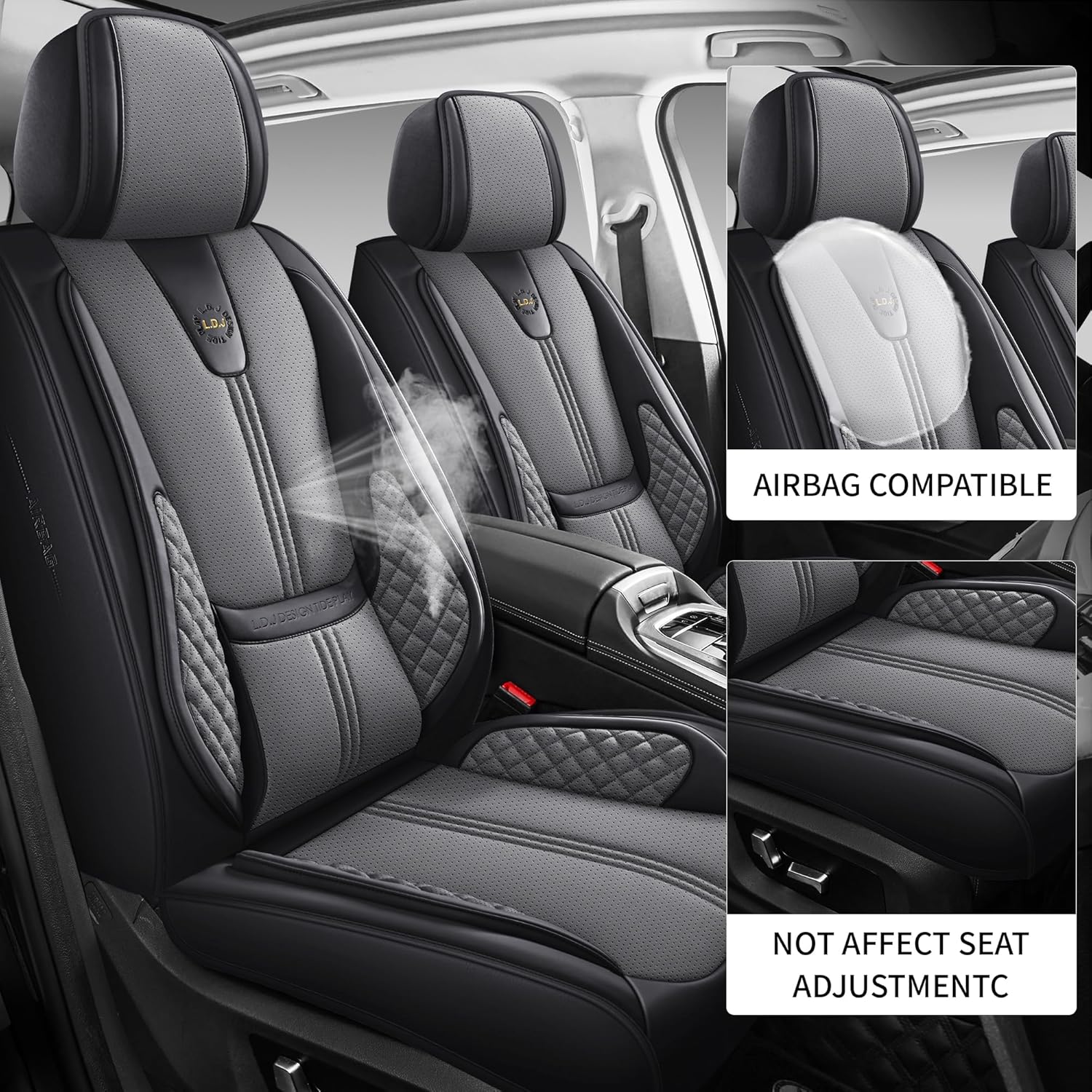 Car Seat Covers Front Only, Black Seat Cover for Cars Compatible Airbag, Easy Install Luxury Leather Automotive Seat Covers with Lumbar Support, for Car, Truck, SUV, Grey
