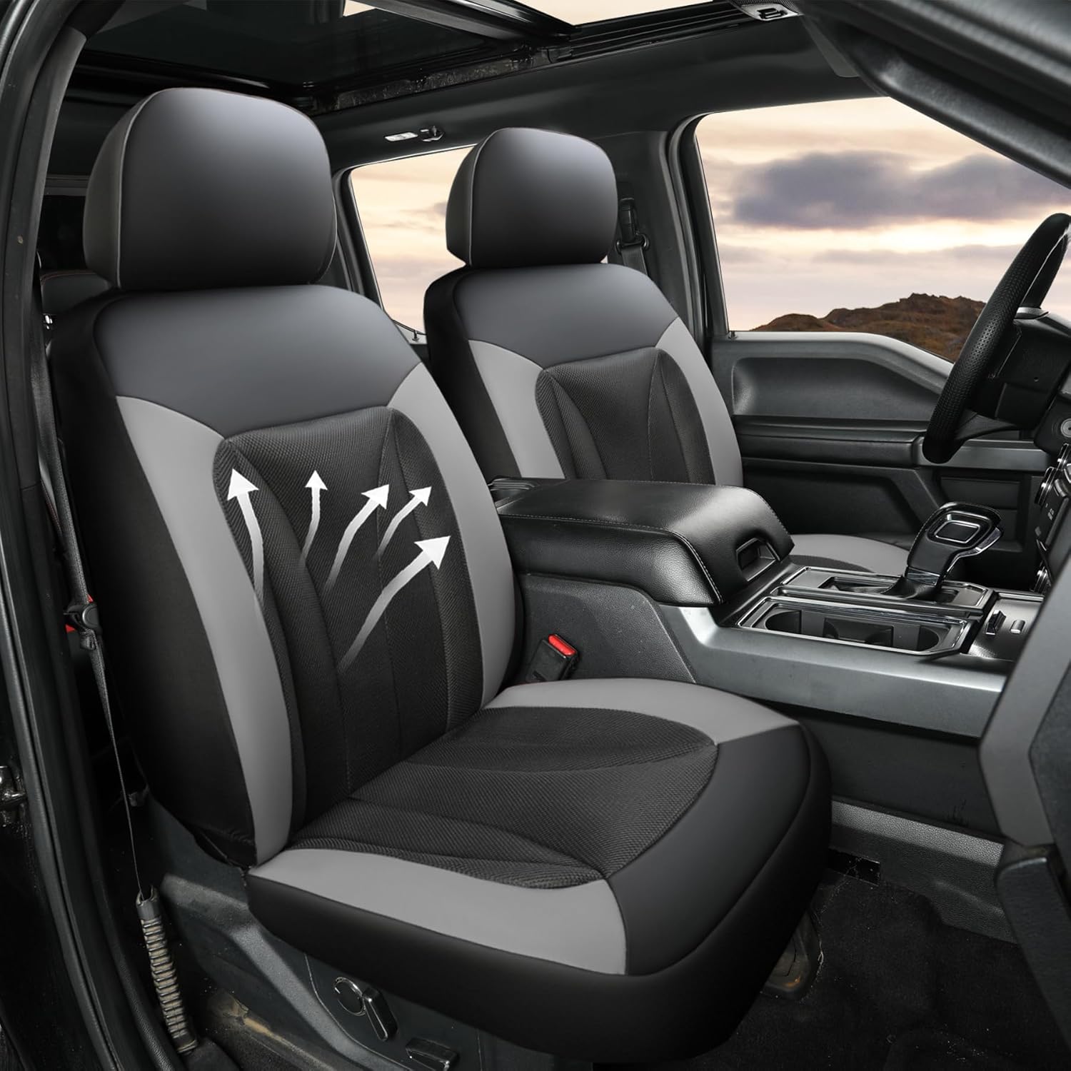 - 【Compatibility】 The ventilated front seat covers are custom fit for Ford F150 F250 F350 F450 SuperCrew / Crew Cab Pickup Trucks