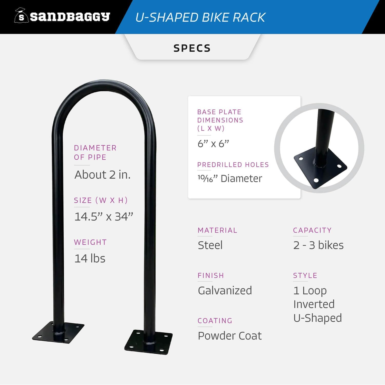- INVERTED U-SHAPED DESIGN - Known for its simple design, our u-shaped commercial road bike stand or mountain bike stand is the perfect choice if you are looking to install a bike rack outdoors! Once installed, it won't budge! Concrete anchor bolts not included.