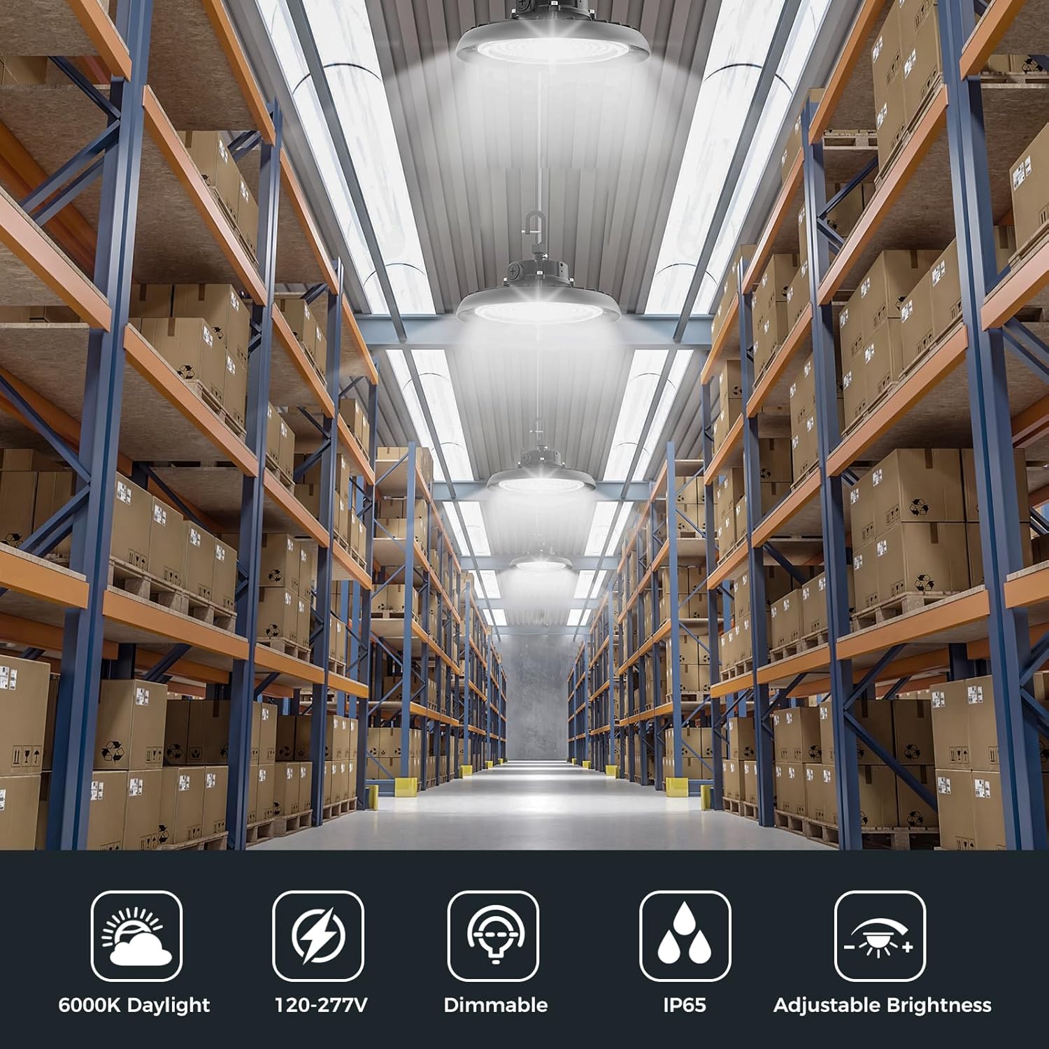 - IP65 Weatherproof & Extreme Durability: IP65 waterproof and built to withstand temperatures from -22°F to 113°F, these high bay lights thrive in harsh conditions. Whether used in outdoor warehouses, damp workshops, or freezing storage facilities, their rugged construction ensures reliable performance.