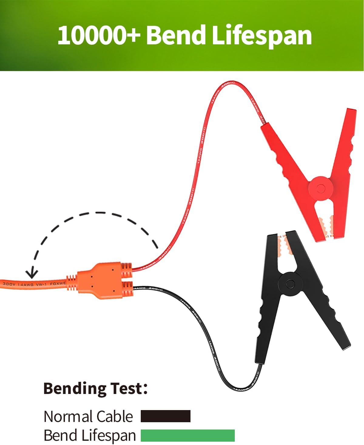 - [Durable Alligator Clips for Maximum Safety] The alligator clips are designed with heat-resistant, insulated handles, providing a secure, tight grip without the risk of loosening. The large clip design ensures strong attachment, while the double-welded connections and screw mechanical fixation ensure the cable delivers optimal conductivity and safe use, with no exposed metal for added protection