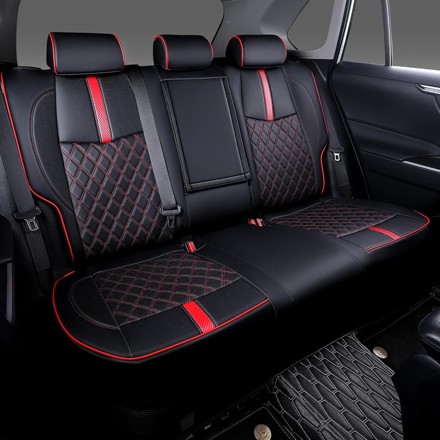 Custom Fit RAV4 Seat Covers for 2019-2025 Toyota RAV4 LE,XLE,XLE Premium,Limited Full Coverage Waterproof Leather Car Seat Covers Full Set (Black with Red Trim)