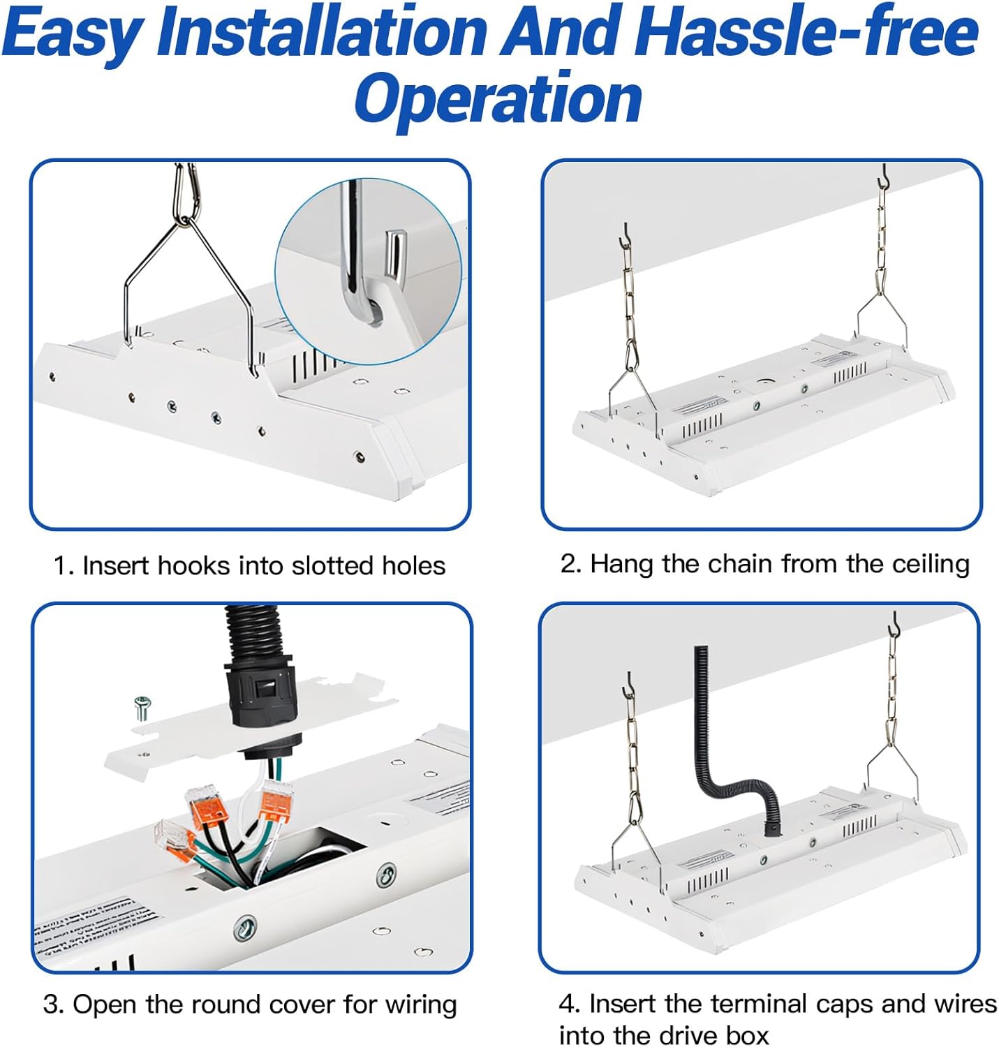 - 【Easy Installation & 5-Year Warranty】 The linear basement lights can be effortlessly hung from the ceiling with the included chain and V-shaped hook. The JTT linear shop light is ETL-certified, guaranteeing its safety and reliability. We offer a 5-year warranty and 24-hour after-sales service for your peace of mind.