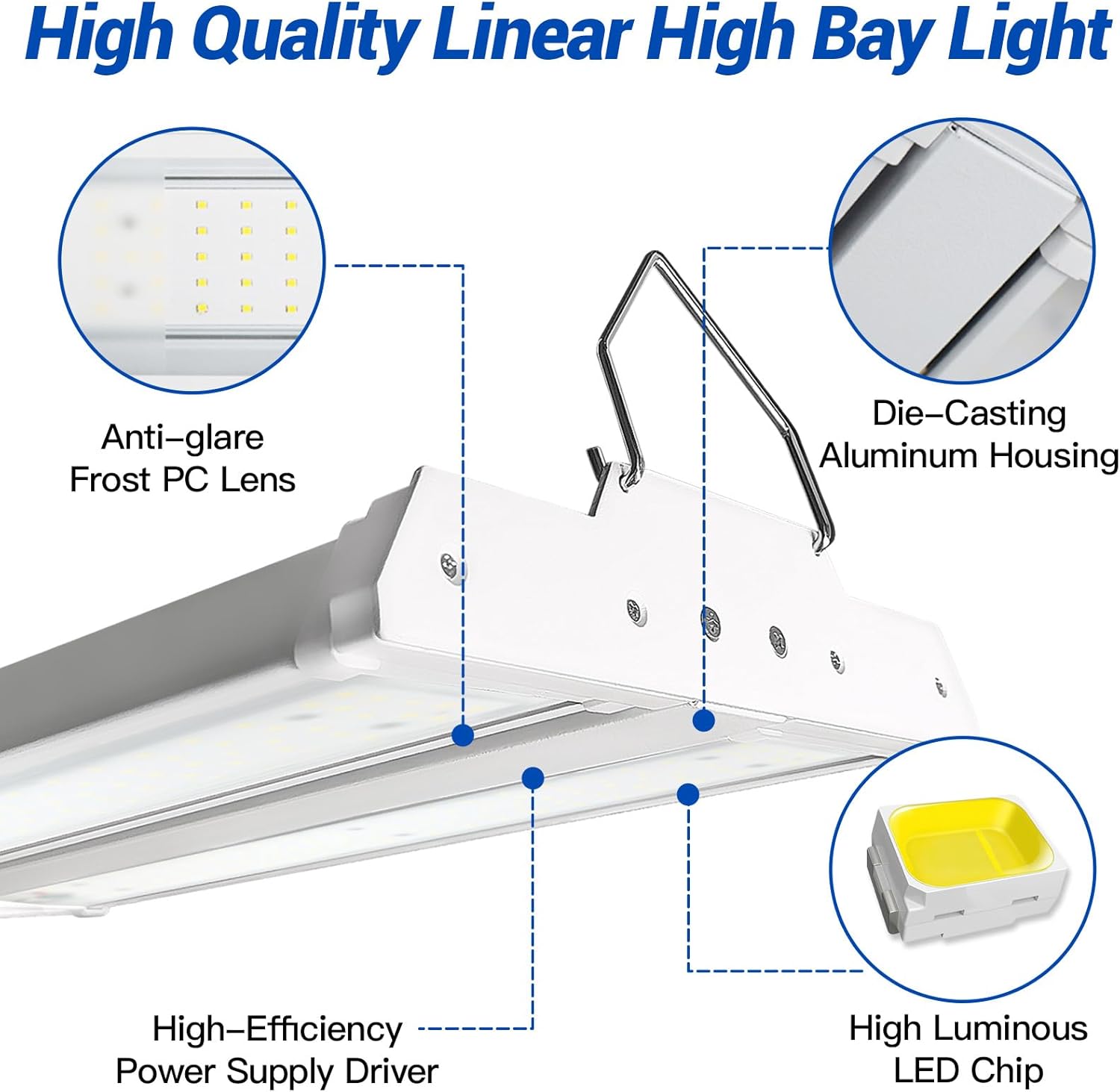 - 【Anti Glare】This LED linear high bay light is just perfect for garages and workshops! It comes with a frosted lens that offers soft, anti - glare light. And it's compatible with a 0 - 10V dimmer for easy output control. With great quality and controllability, it's an ideal choice for lighting in warehouses and workshops.