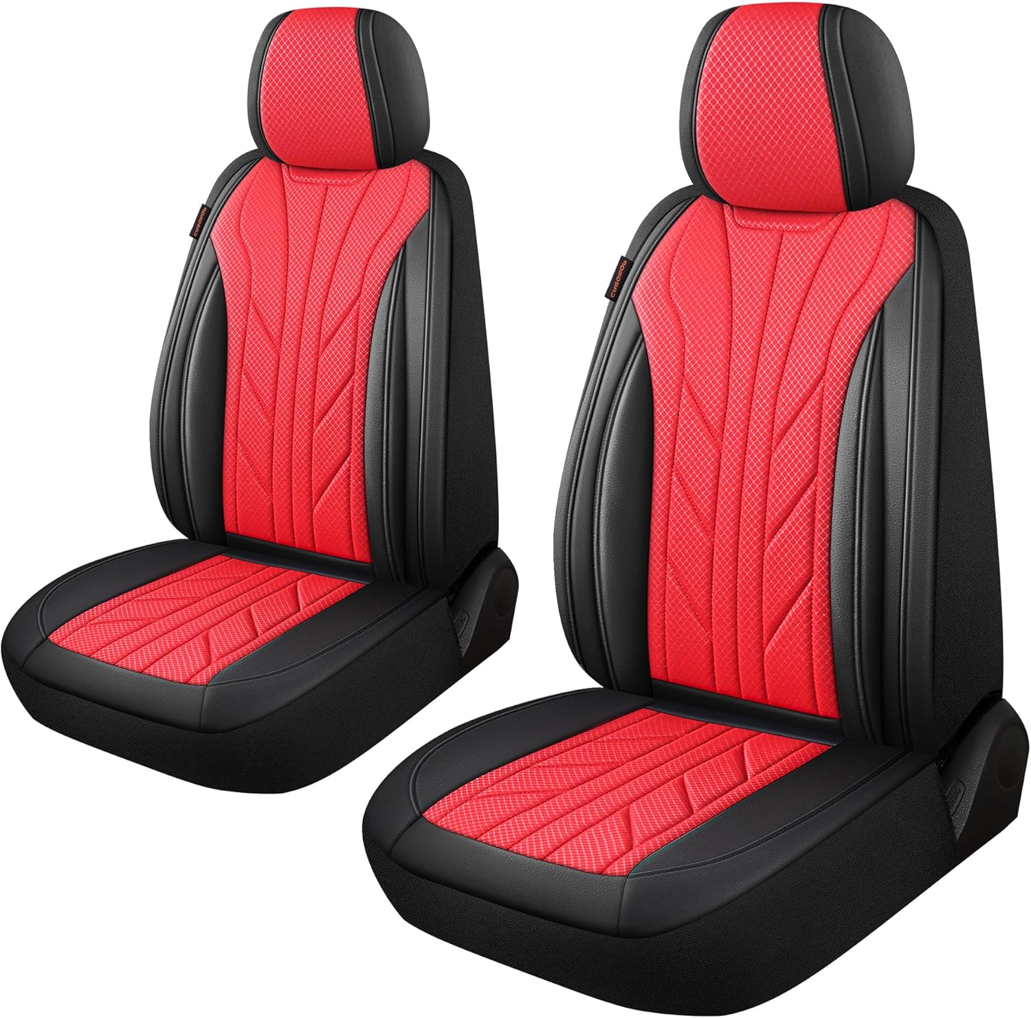 CAROMOP Luxury Faux Leather&Fabric Car Seat Covers 2 Front Seats with Breathable 3D Foam Back Support, Universal Seat Covers for Cars,Trucks,SUVs, Front Armrests Compatible(Black/Red)