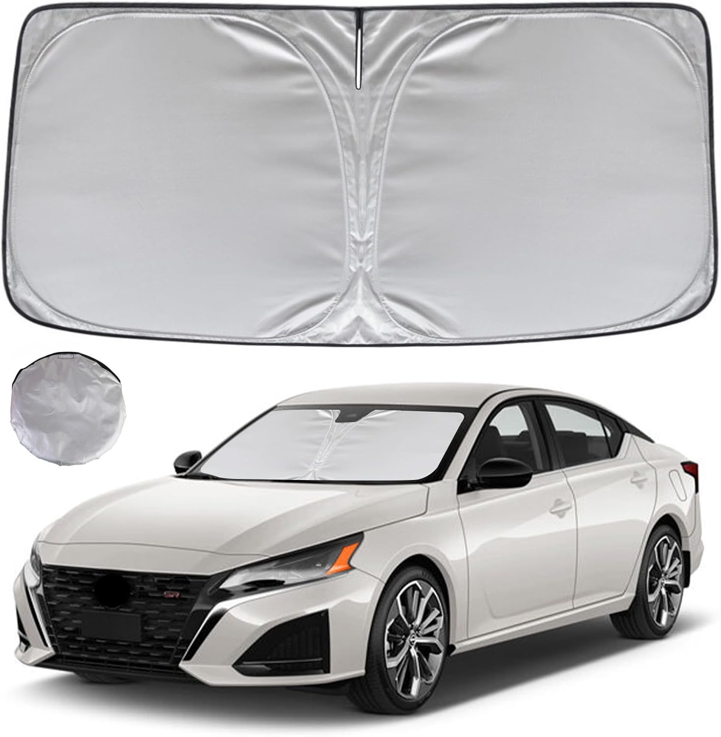 - KAYZT windshield sun shade is precise custom fit for 2019 2020 2021 2022 2023 2024 2025 Nissan Altima, Thoroughly covers every corner of the windshield, Tailored to accommodate rear view mirror, Ensuring a seamless and snug fit without obstruction, Must have car accessories for Nissan Altima