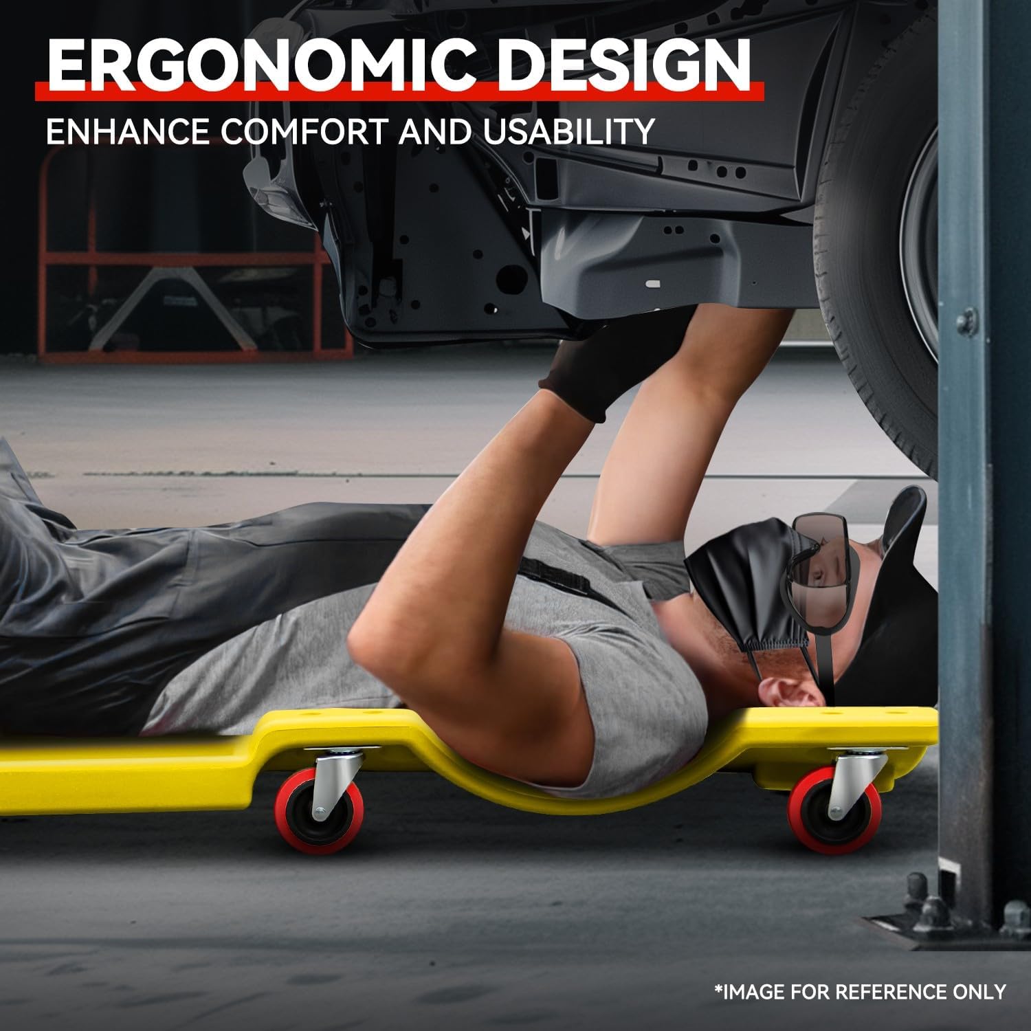 Auto Dynasty 36 Inches Mechanic Creeper, Automotive Garage Repair Low Profile Under Car Rolling Creeper with Padded Headrest, Plastic, Yellow