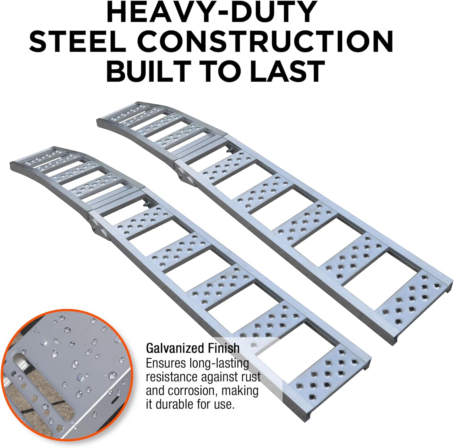 - FOLDABLE & PORTABLE DESIGN: When not in use, the ramps can be folded and easily stored without taking up much space. Built-in rust prevention helps them last longer, even in challenging conditions.