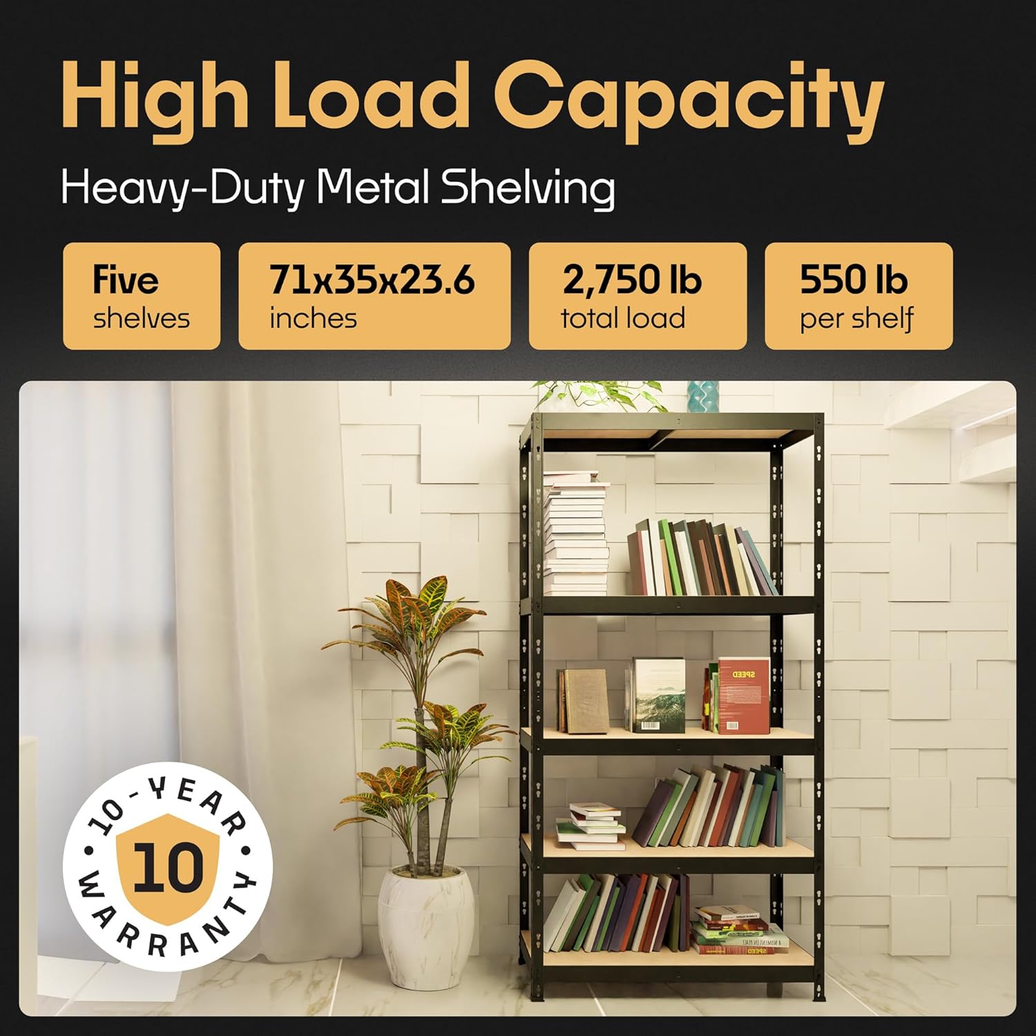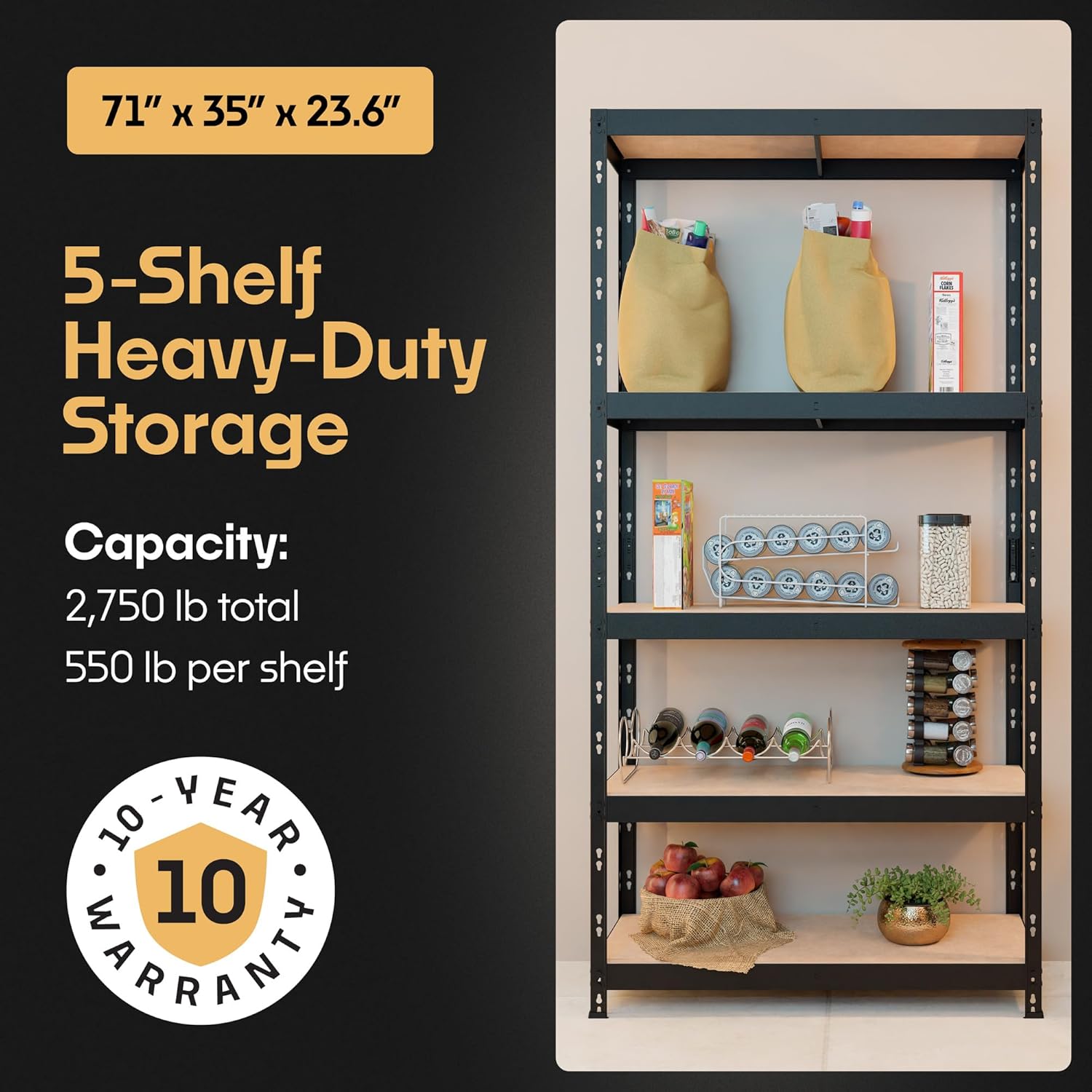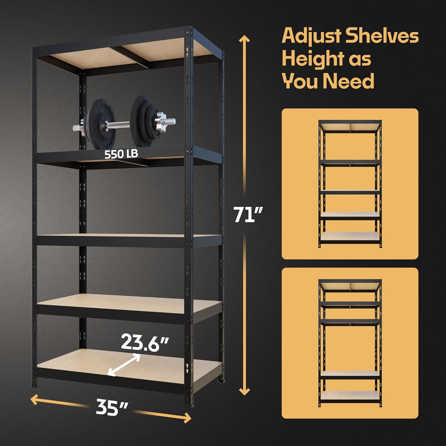 Storage Shelves: 5 Storage Shelves Heavy Duty w/ 2,750 lb Total Load Capacity, 550 per Storage Shelf, 71x35x24 | Perfect Solution for Your Storage Needs | Adjustable Shelving Unit