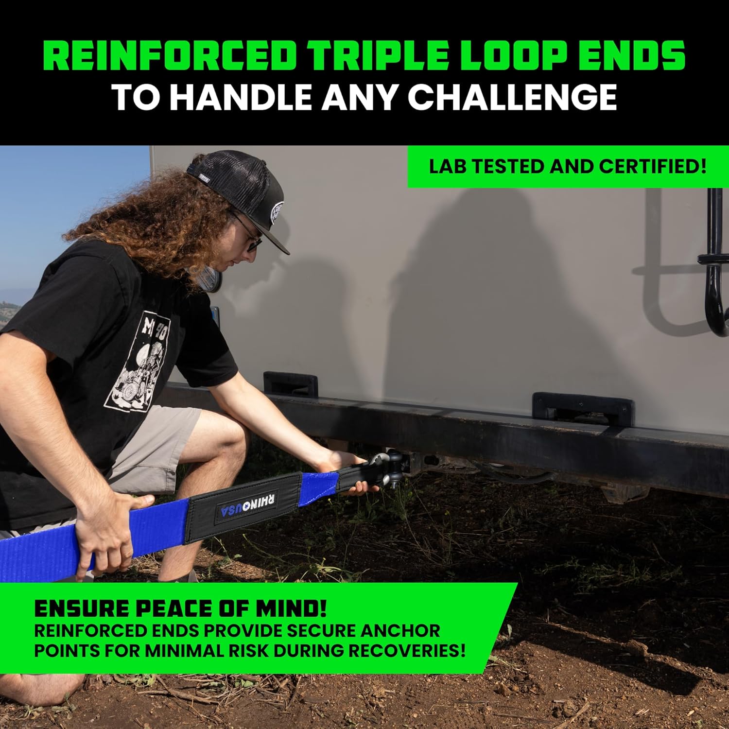 - TRIPLE REINFORCED ENDS - High Tensile Loop Ends Provide Protection Against Wear and Tear, Abrasion, and Load Stress, Ensuring Durable and Secure Connection Points When Recovering