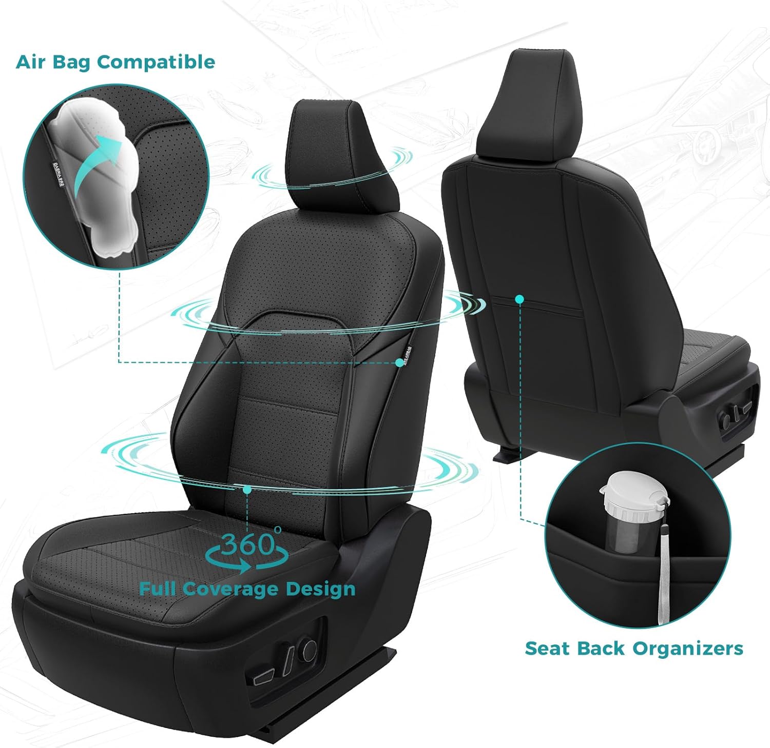 - 【Maintain Existing Functionality】: Tailored to fit snugly all details of car seat covers for Toyota camry and ensure the full function, not affecting at all the use of airbag, armrests, safety belt, child seats and seat adjustments. full wrap front car seat covers come with seat back organizer for improved user convenience.
