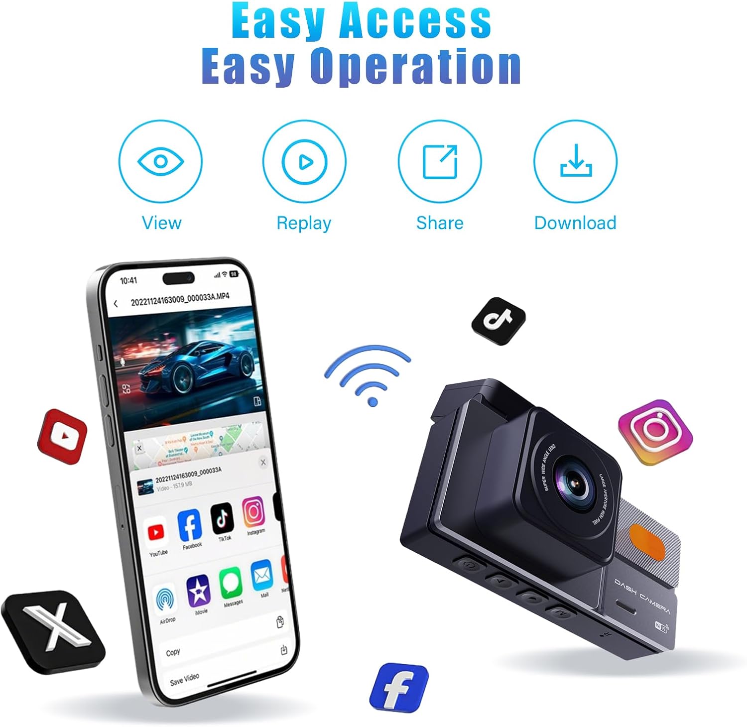 K03 On-Dash Cameras - Front and Rear Dash Cam for Cars, 4K Dual DashCam, Wireless Dash Camera with HDR Night Vision, GPS, Voice Control, Remote Live View - Best Rated Car Camera 2024