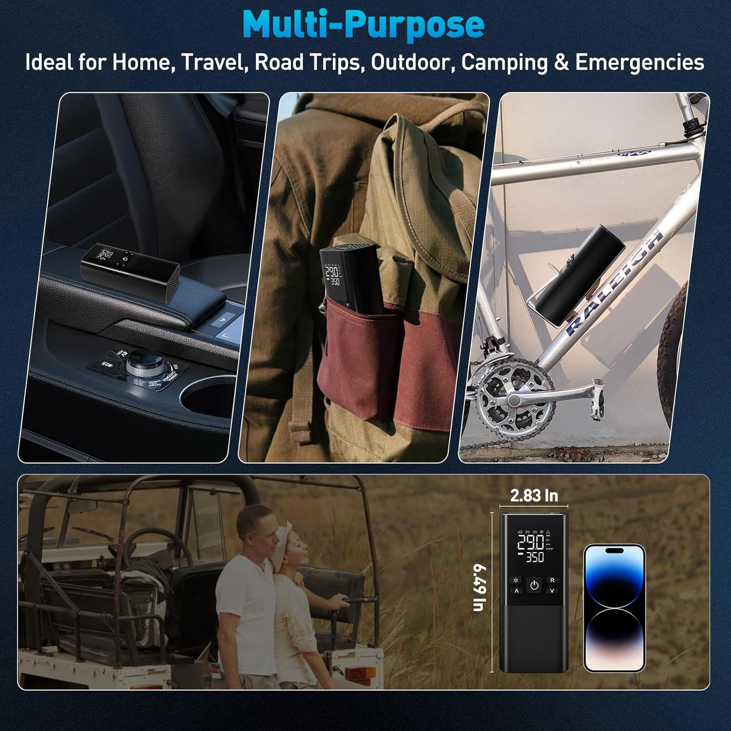 - Recommended Uses For Product : Tire Inflation, air pump for car tires, car accessories, motorcycle accessories, tire inflator portable air compressor Tire Inflation, air pump for car tires, car accessories, motorcycle accessories, tire inflator portable air compressor