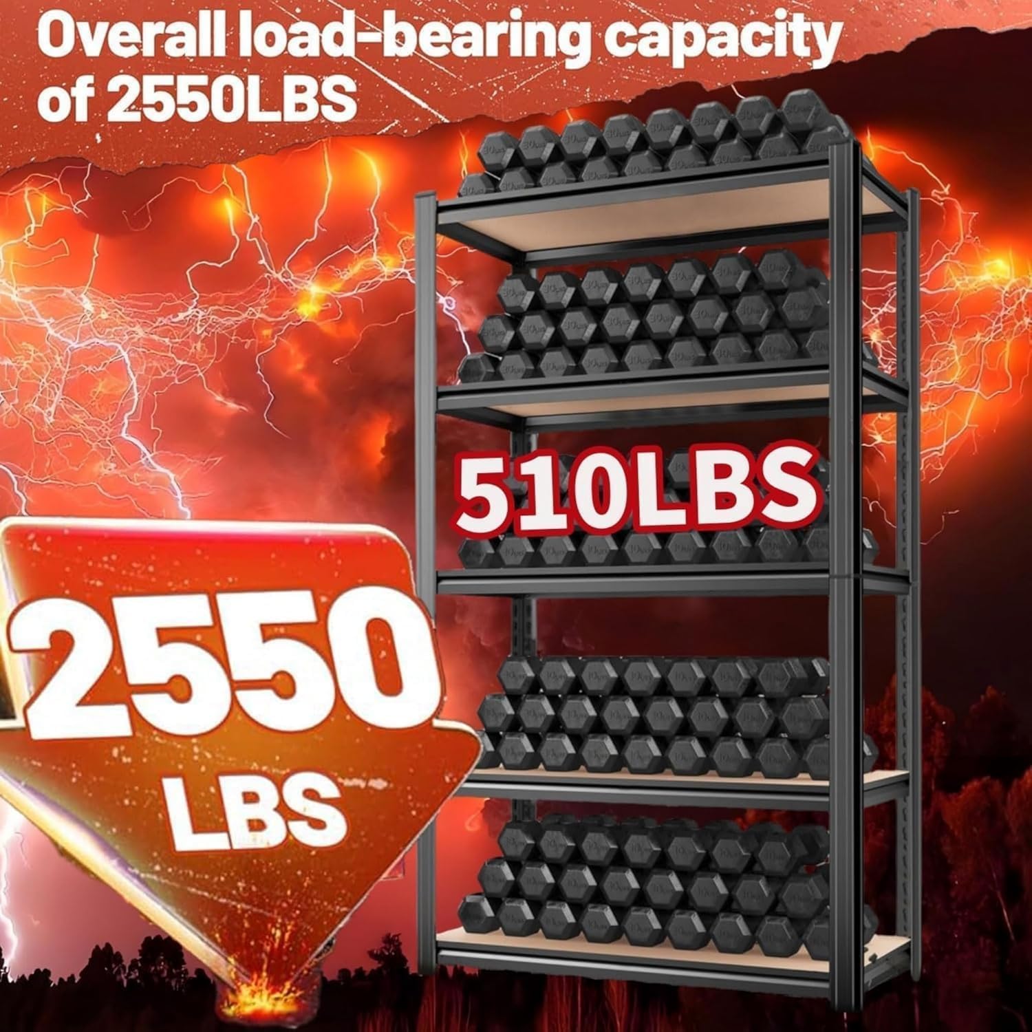 - 【Heavy Duty Garage Shelving With a Load Capacity of 2550 Lbs.】 This garage shelving has a solid structure, high load capacity and simple and beautiful design. With double shelf plate design and wider columns, it effectively improves the overall stability and can withstand heavier items. Wooden panels have a natural and warm texture, adding a cozy atmosphere to the space. Whether it is a garage, warehouse, tool shed or closet storage, this shelf can be well integrated into a variety of environments, both practical and decorative effect.